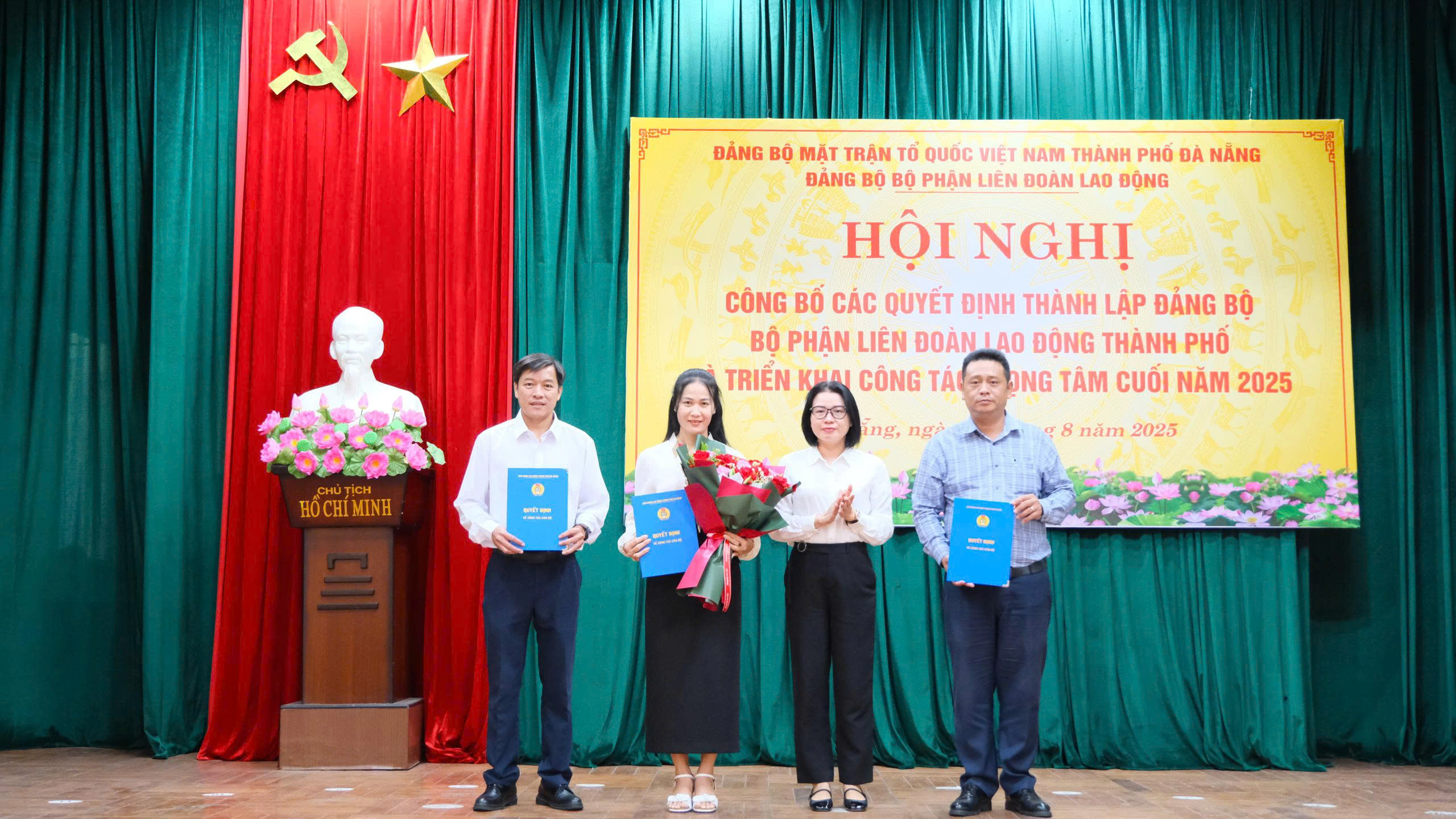Theo đó, tại Quyết định số 05-QĐ/ĐU ngày 11/8/2025, Ban Chấp hành Đảng bộ Mặt trận Tổ quốc Việt Nam thành phố quyết định thành lập Đảng bộ bộ phận Liên đoàn Lao động thành phố với 73 đảng viên, trực thuộc Đảng ủy Mặt trận Tổ quốc Việt Nam thành phố. Ban Chấp hành Đảng bộ bộ phận Liên đoàn Lao động thành phố gồm 7 đồng chí; đồng chí Phan Thị Thúy Linh giữ chức vụ Bí thư Đảng bộ; đồng chí Lê Văn Đại giữ chức vụ Phó Bí thư Đảng bộ.