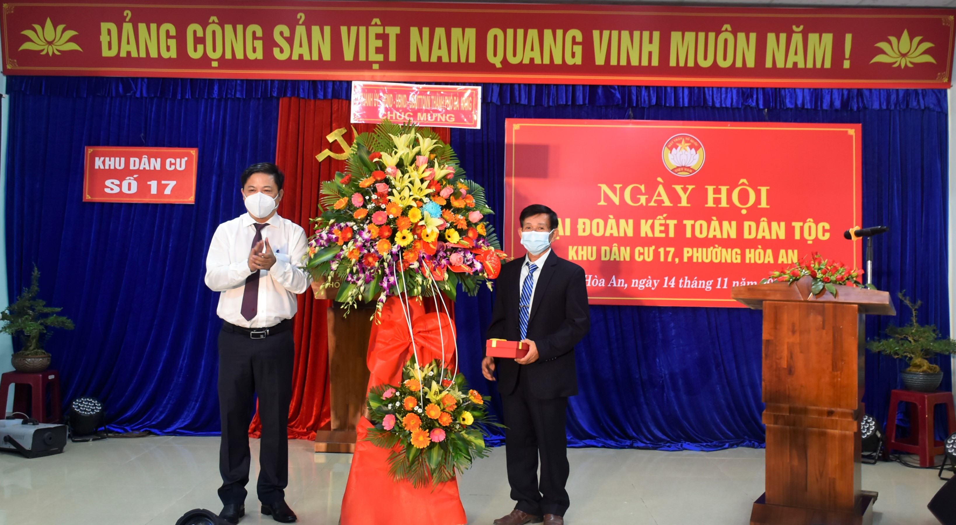 Chiều ngày 14/11, Ủy viên Dự khuyết Trung ương Đảng, Phó Bí thư Thường trực Thành ủy, Chủ tịch HĐND thành phố Lương Nguyễn Minh Triết đến dự và chúc mừng Ngày hội Đại đoàn kết toàn dân tộc tại KDC số 17, phường Hòa An, quận Cẩm Lệ, cùng dự có Phó Chủ tịch Ủy ban MTTQ Việt Nam thành phố Tăng Hoàng Hôn Thắm cùng đại diện lãnh đạo các cơ quan, ban, ngành thành phố, quận Cẩm Lệ và phường Hòa An.