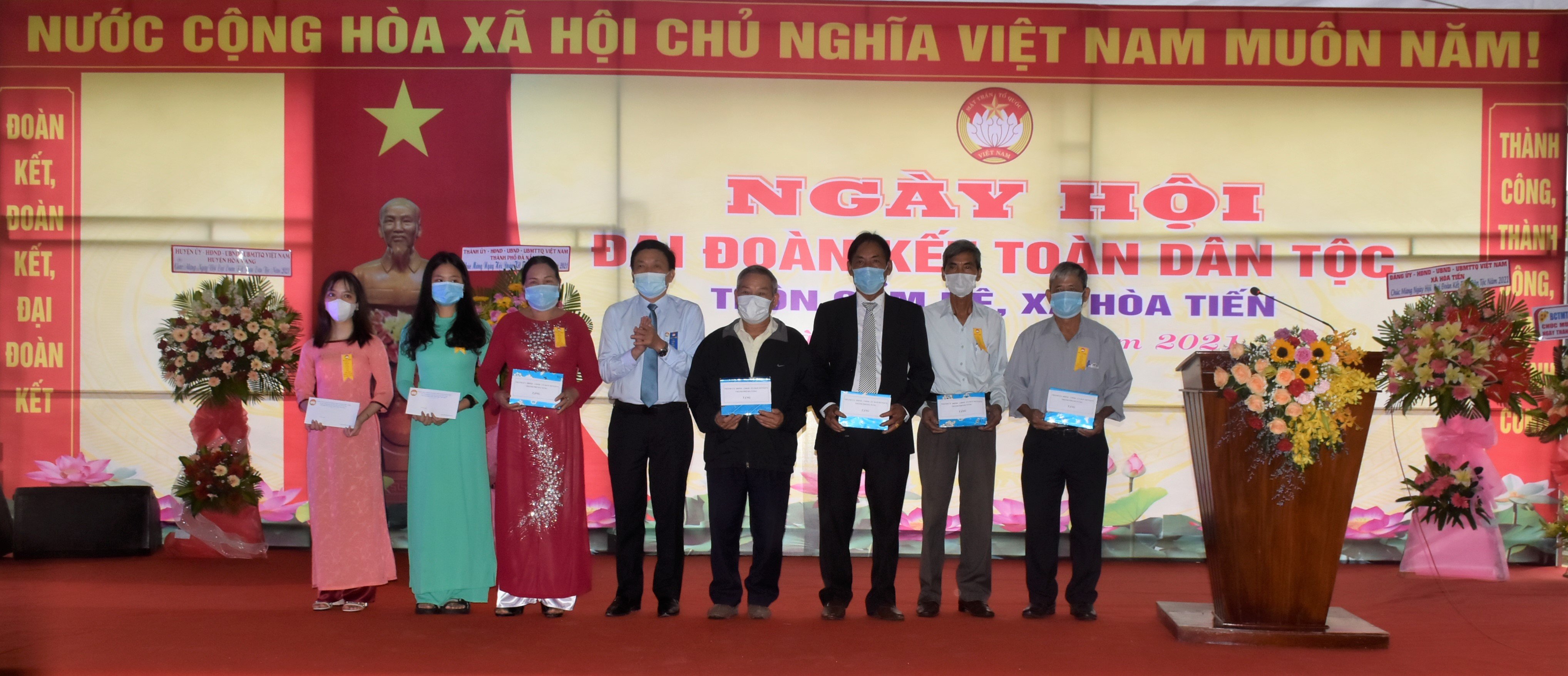 Dịp này, Ủy ban MTTQ Việt Nam thành phố đã trao tặng 02 Bằng khen cho các tập thể có thành tích trong công tác phòng, chống dịch; 02 suất học bổng cho sinh viên nghèo vượt khó, 05 suất quà động viên cán bộ Mặt trận đã có nhiều nổ lực trong phòng, chống dịch Covid-19 tại khu dân cư; Mặt trận huyện trao giấy khen cho 02 tập thể, 03 cá nhân cùng nhiều phần quà của lãnh đạo huyện, xã và thôn cho các hộ dân khó khăn trong khu dân cư.