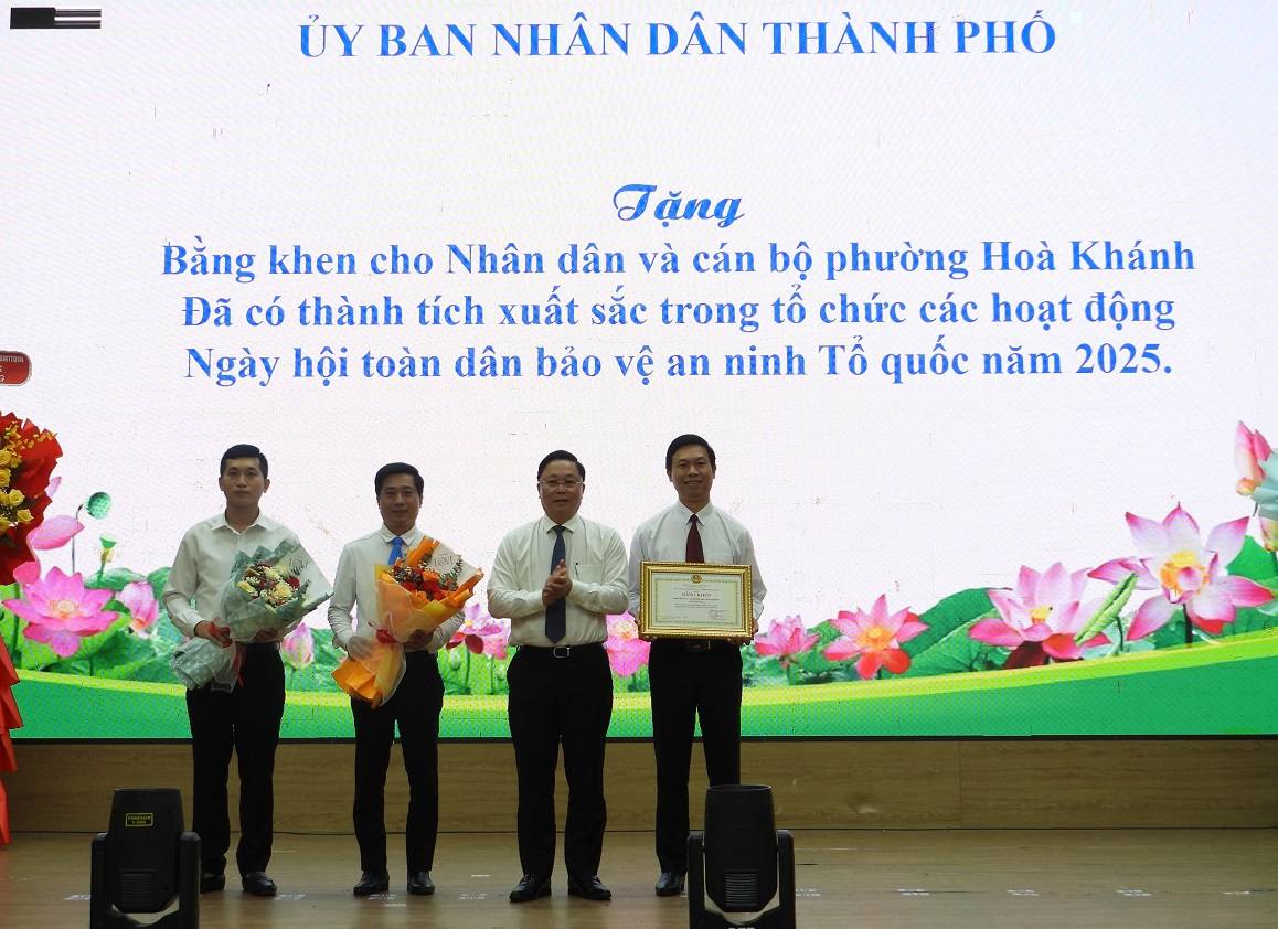 Nhân dịp này, Chủ tịch UBND TP Đà Nẵng tặng Bằng khen cho Nhân dân và cán bộ phường Hòa Khánh đã có thành tích xuất sắc trong tổ chức các hoạt động Ngày hội; Giám đốc Công an TP Đà Nẵng tặng Giấy khen cho 01 tập thể và 01 cá nhân có thành tích trong công tác tổ chức các hoạt động tiến tới Ngày hội; UBND phường Hòa Khánh tặng Giấy khen cho 15 tập thể và 20 cá nhân có thành tích xuất sắc trong phong trào toàn dân bảo vệ an ninh Tổ quốc năm 2025.
