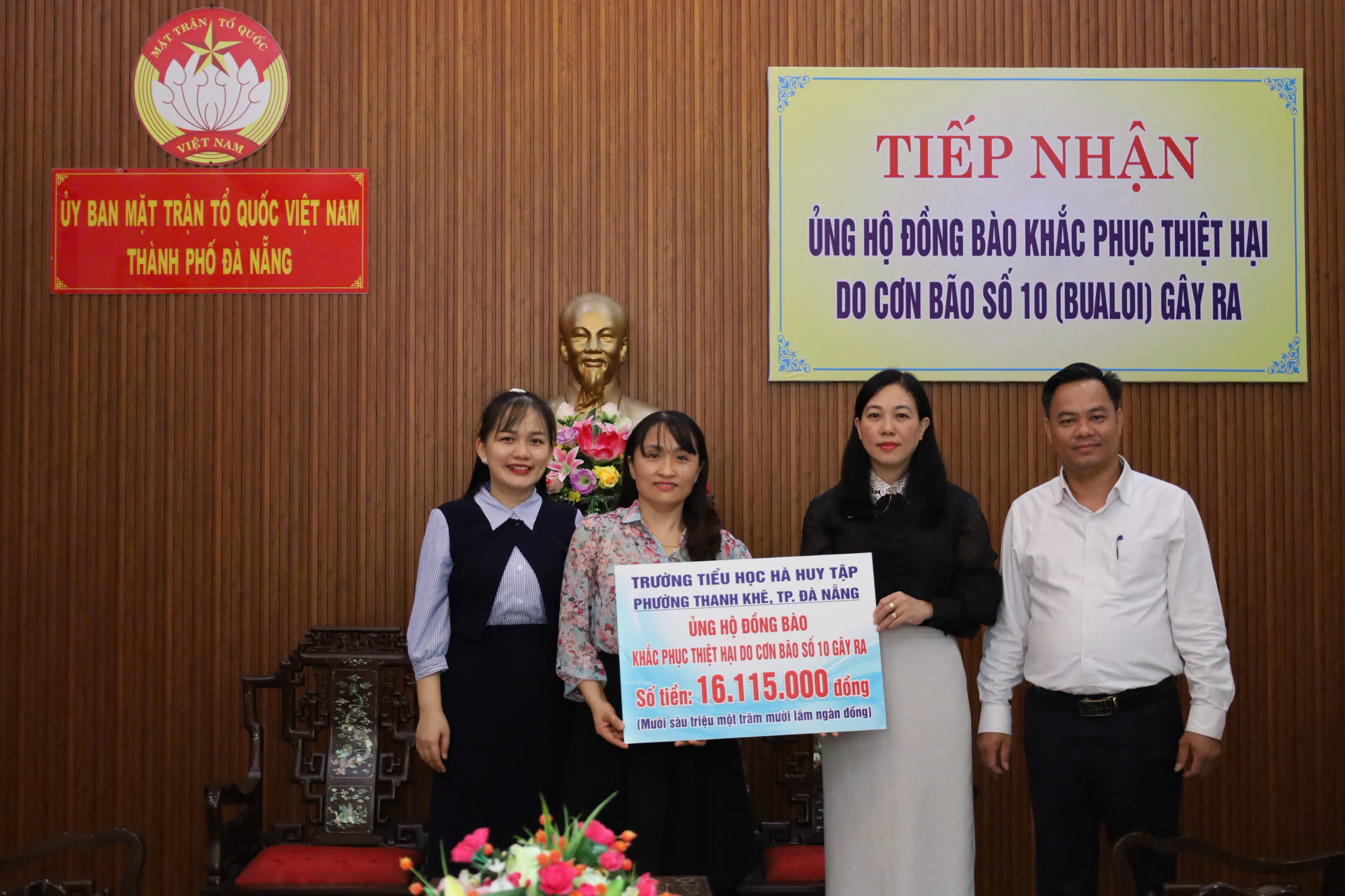 Ủy ban MTTQ Việt Nam thành phố đã nhận được ủng hộ của trường Tiểu học Hà Huy Tập (phường Thanh Khê, TP Đà Nẵng), số tiền: 16.115.000 đồng. Gia đình ông Nguyễn Phước Thành (Tổ 27 Thanh Khê Tây, phường Thanh Khê, TP Đà Nẵng, số tiền 10.000.000 đồng.