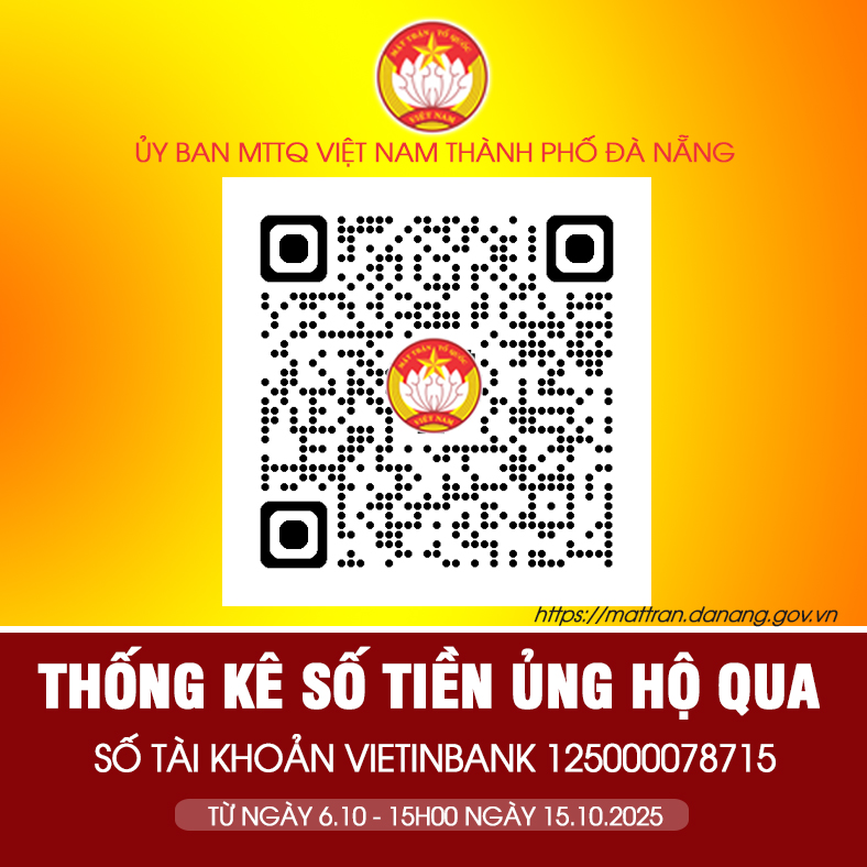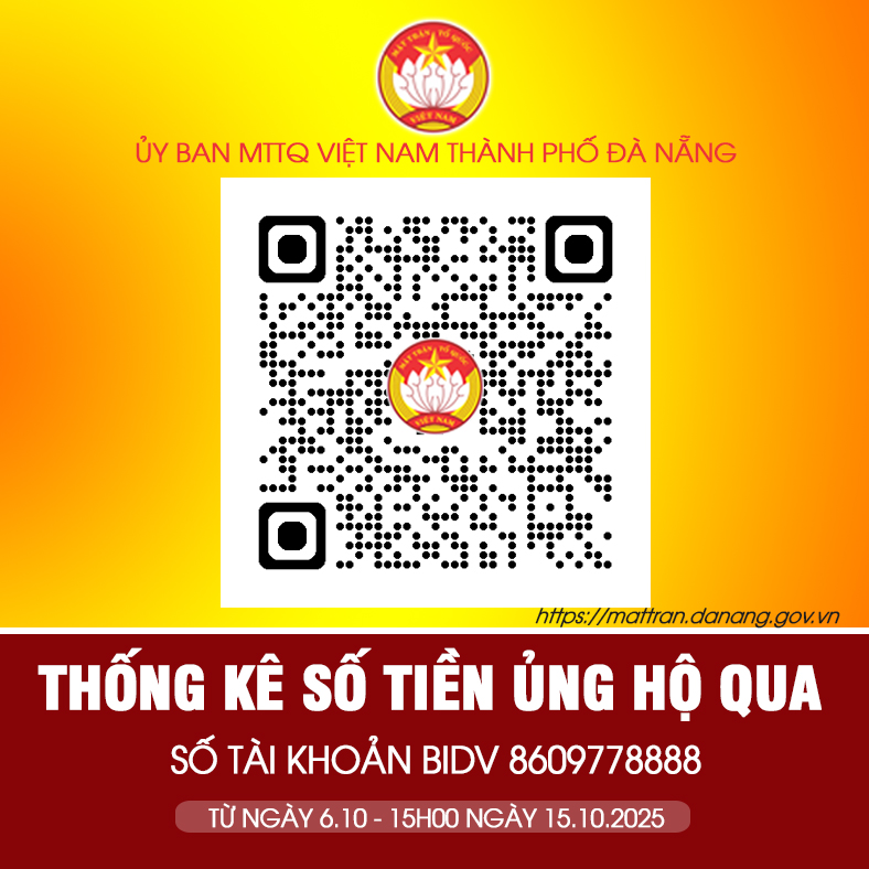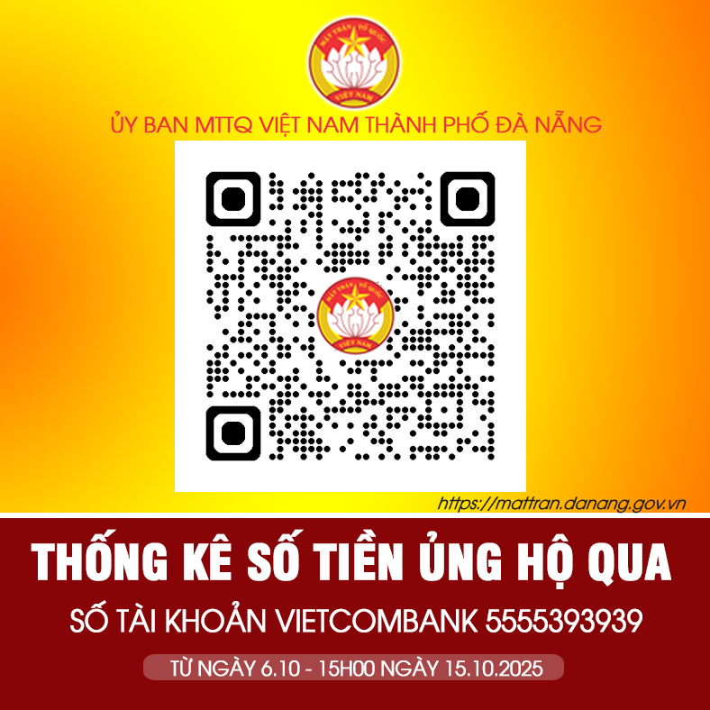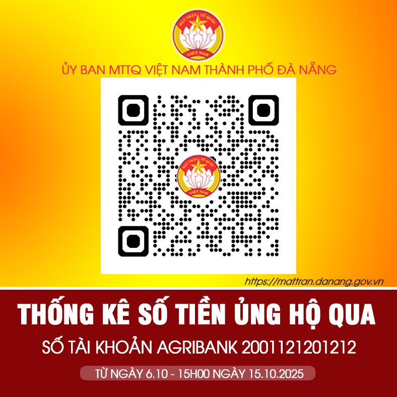 Thời gian tiếp nhận ủng hộ tiếp tục kéo dài đến hết ngày 7/11/2025. Cá nhân, tổ chức có thể ủng hộ trực tiếp tại trụ sở cơ quan Ủy ban MTTQ Việt Nam thành phố (số 12 đường Trần Phú, phường Hải Châu, thành phố Đà Nẵng) hoặc gián tiếp qua các số tài khoản đã được công khai.