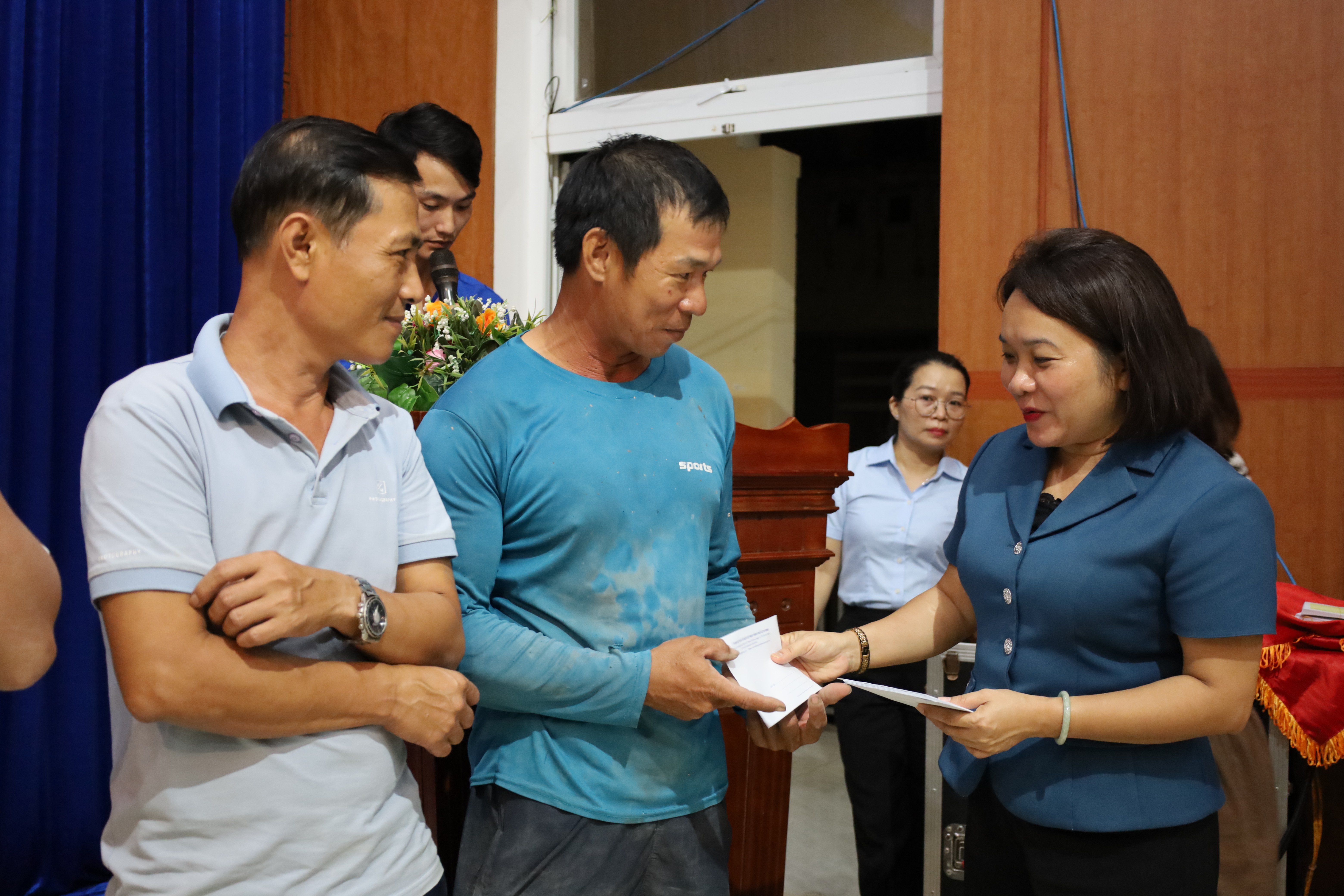 Đồng chí Huỳnh Thị Thuỳ Dung - UV BTV, Trưởng ban Tuyên giáo và Dân vận Thành uỷ Đà Nẵng trao quà hỗ trợ người dân xã Nam Phước