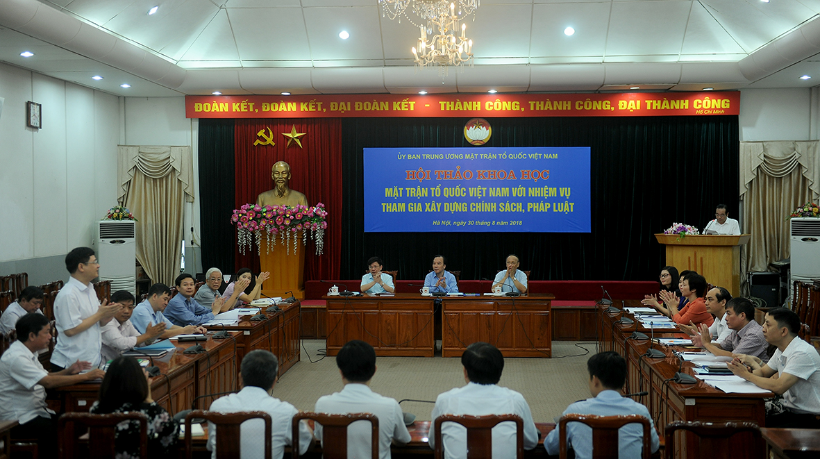 Tại hội thảo, các đại biểu tập trung đề ra một số giải pháp nhằm tăng cường hiệu quả trong công tác xây dựng pháp luật của MTTQ Việt Nam và các tổ chức thành viên. Các đại biểu cho rằng, để đoàn kết, tăng cường đồng thuận xã hội, cốt lõi là phải phát huy dân chủ, đảm bảo hài hoà giữa các lợi ích. Các cơ chế chính sách đều phải được thể chế bằng pháp luật. Muốn thực hiện được nhiệm vụ, trách nhiệm đại diện, bảo vệ quyền và lợi ích hợp pháp, chính đáng của nhân dân thì MTTQ phải tích cự tham gia xây dựng pháp luật.