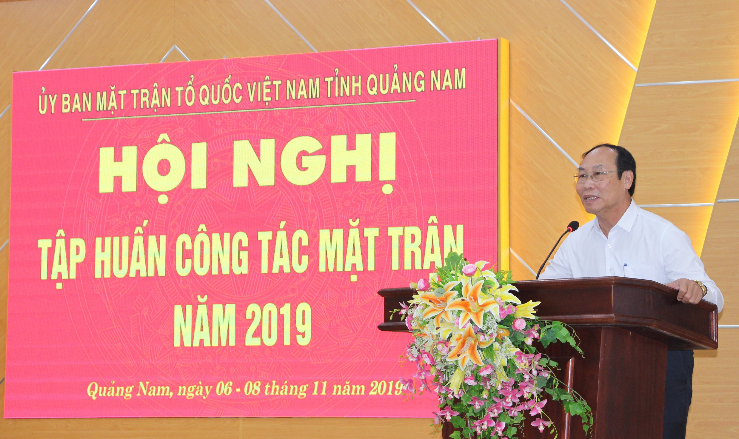 Phát biểu khai mạc Hội nghị, Ông Võ Xuân Ca, UVBTV, Trưởng Ban Dân vận Tỉnh ủy, Chủ tịch Ủy ban MTTQ Việt Nam tỉnh nhấn mạnh: “Một trong 05 chương trình hành động được đề ra sau Đại hội đại biểu MTTQ Việt Nam các cấp nhiệm kỳ 2019-2024 là tiếp tục củng cố, kiện toàn, nâng cao chất lượng đội ngũ cán bộ làm công tác Mặt trận các cấp góp phần đổi mới nội dung, phương thức hoạt động của Mặt trận đáp ứng yêu cầu nhiệm vụ trong giai đoạn mới. Theo đó, việc tập trung thực hiện công tác tập huấn, bồi dưỡng kỹ năng, nghiệp vụ công tác cho đội ngũ cán bộ Mặt trận các cấp, nhất là đội ngũ cán bộ mới tham gia công tác Mặt trận nhiệm kỳ 2019-2024 là hết sức cần thiết, có ý nghĩa quyết định đến hiệu quả công tác Mặt trận trong thời gian đến”.