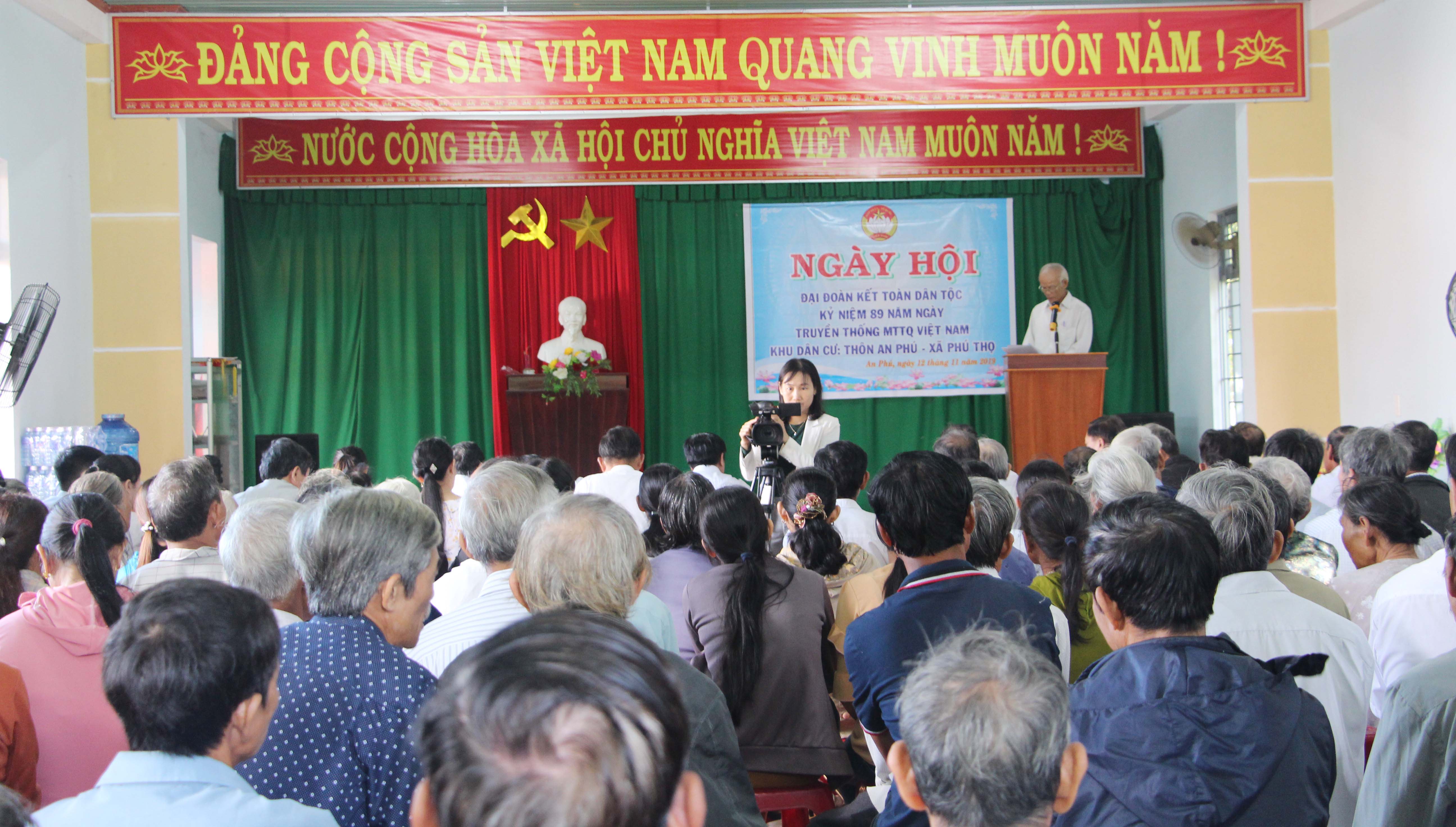 Tham dự buổi lễ có Ông Võ Xuân Ca, UVBTV, Trưởng Ban Dân vận Tỉnh ủy, Chủ tịch Ủy ban MTTQ Việt Nam tỉnh; Ông Lý Xuân Phong, UVBTV Huyện ủy, Chủ tịch Ủy ban MTTQ Việt Nam huyện; đại diện lãnh đạo Đảng ủy, HĐND, UBND, UBMTTQVN xã Phú Thọ; Ban Công tác Mặt trận KDC An Phú và đông đảo bà con ở KDC An Phú tham dự.