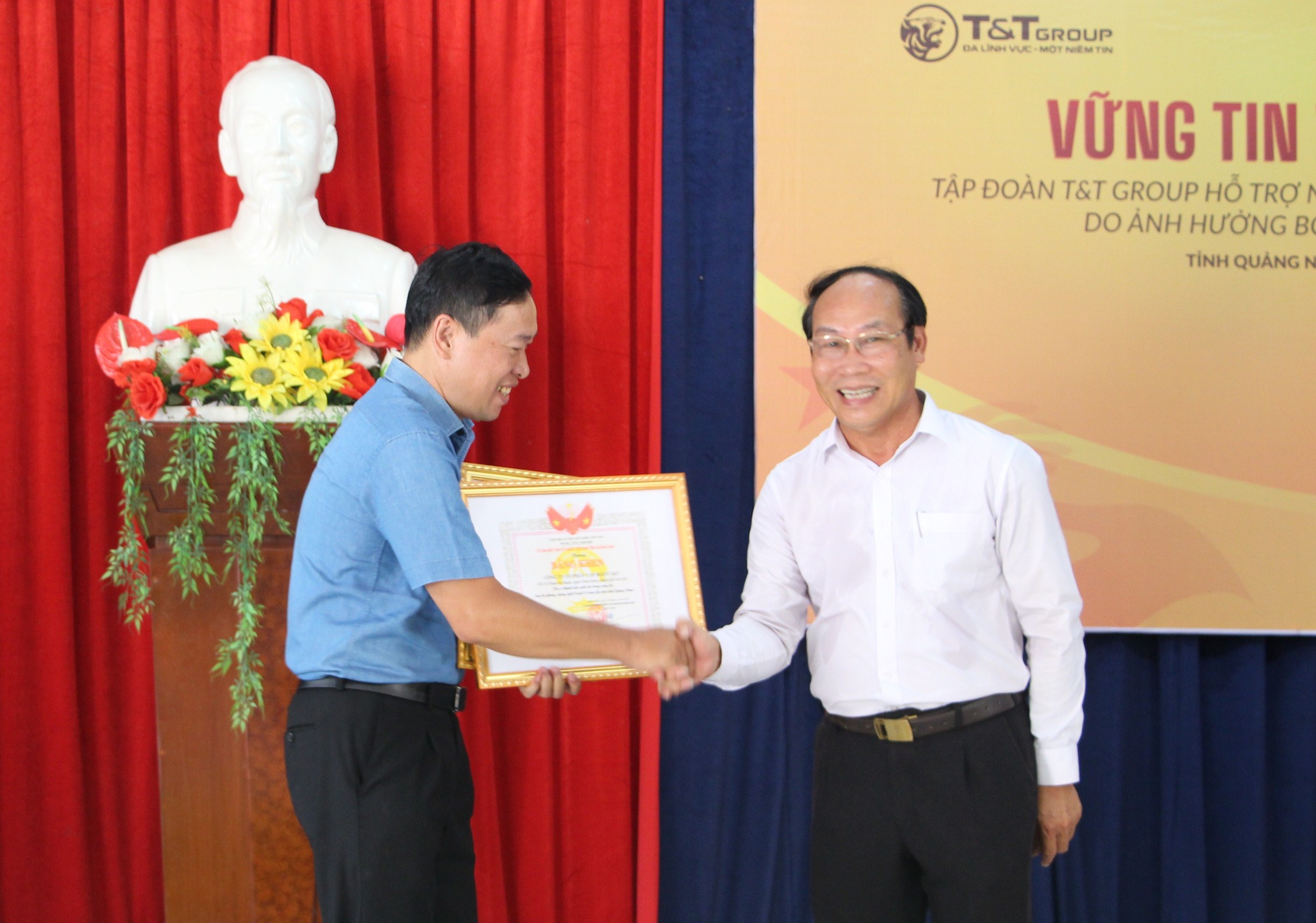 Phát biểu tại Lễ trao quà ông Võ Xuân Ca- UVBTV, Chủ tịch Ủy ban MTTQ Việt Nam tỉnh khẳng định: Trong cuộc chiến phòng, chống dịch Covid-19, doanh nghiệp là nhóm bị ảnh hưởng, thiệt hại nhiều nhất, song với tinh thần trách nhiệm xã hội, thể hiện tinh thần tương thân, tương ái đã chung tay, góp sức cùng cả nước vượt qua đại dịch. Tại đây, ông trao Thư cảm ơn và tặng Bằng khen của Ủy ban MTTQ Việt Nam tỉnh cho Tập đoàn T&T, thay mặt bà con cảm ơn tình cảm mà Tập đoàn đã dành cho Quảng Nam.