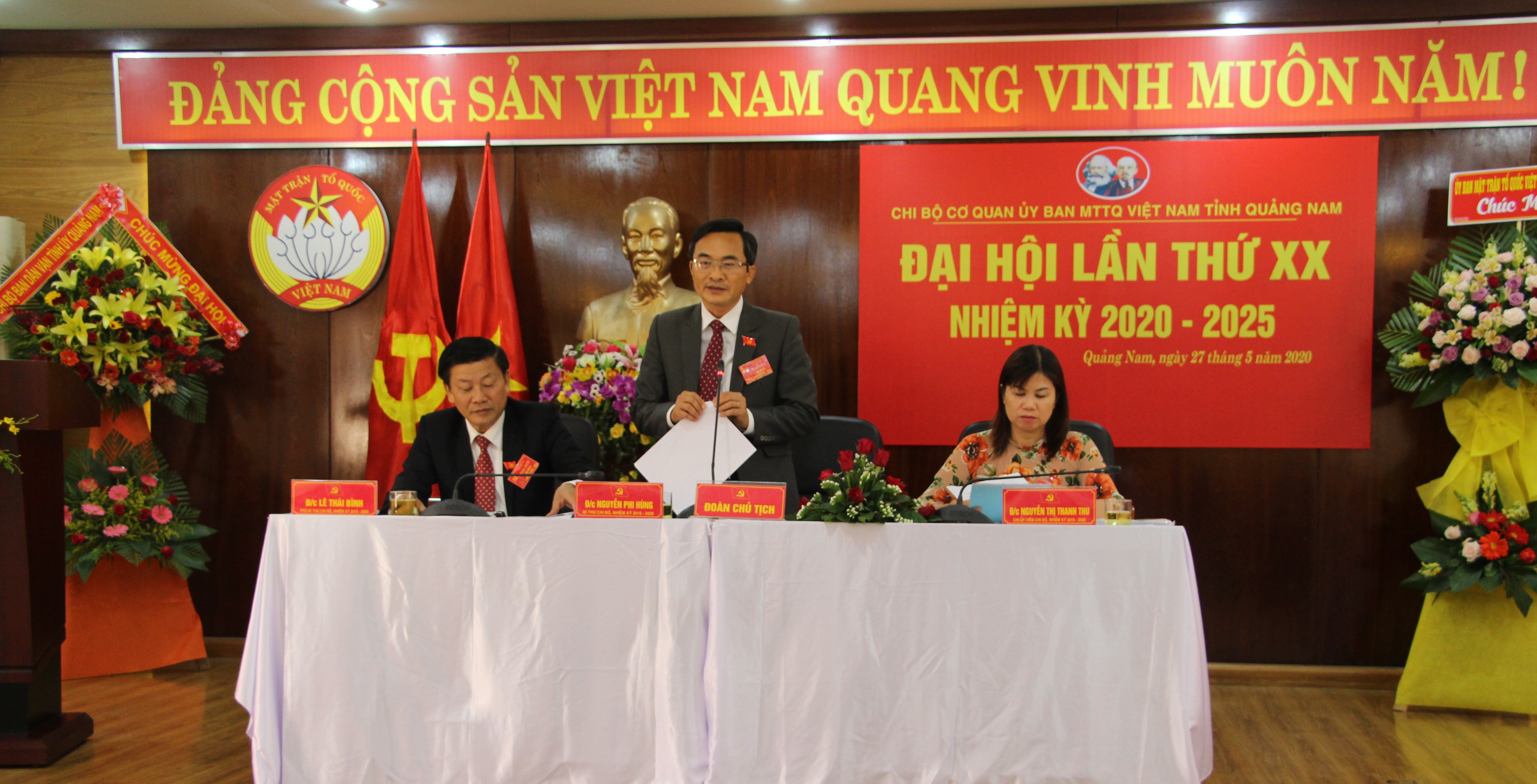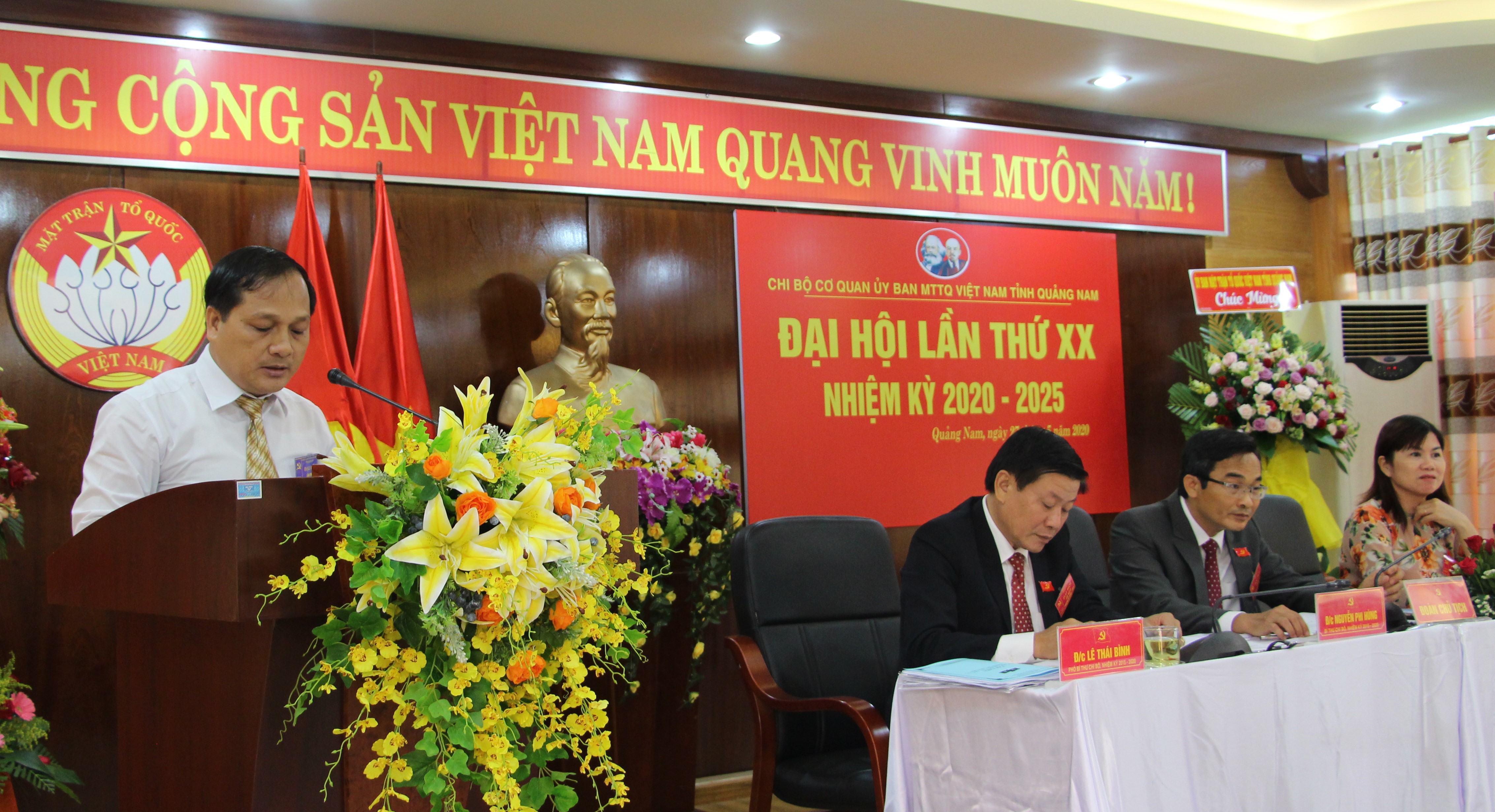 Đại hội Chi bộ cơ quan Ủy ban MTTQ Việt Nam tỉnh Quảng Nam lần thứ XX, nhiệm kỳ 2020 - 2025 đã bầu 05 đồng chí vào Cấp ủy khóa mới, đồng chí Nguyễn Phi Hùng, Bí thư Chi bộ cơ quan Ủy ban MTTQ tỉnh khóa XIX tái cử; bầu 02 đại biểu chính thức và 01 đại biểu dự khuyết đi dự Đại hội Đảng bộ khối các cơ quan tỉnh Quảng Nam lần thứ IX, nhiệm kỳ 2020 - 2025.