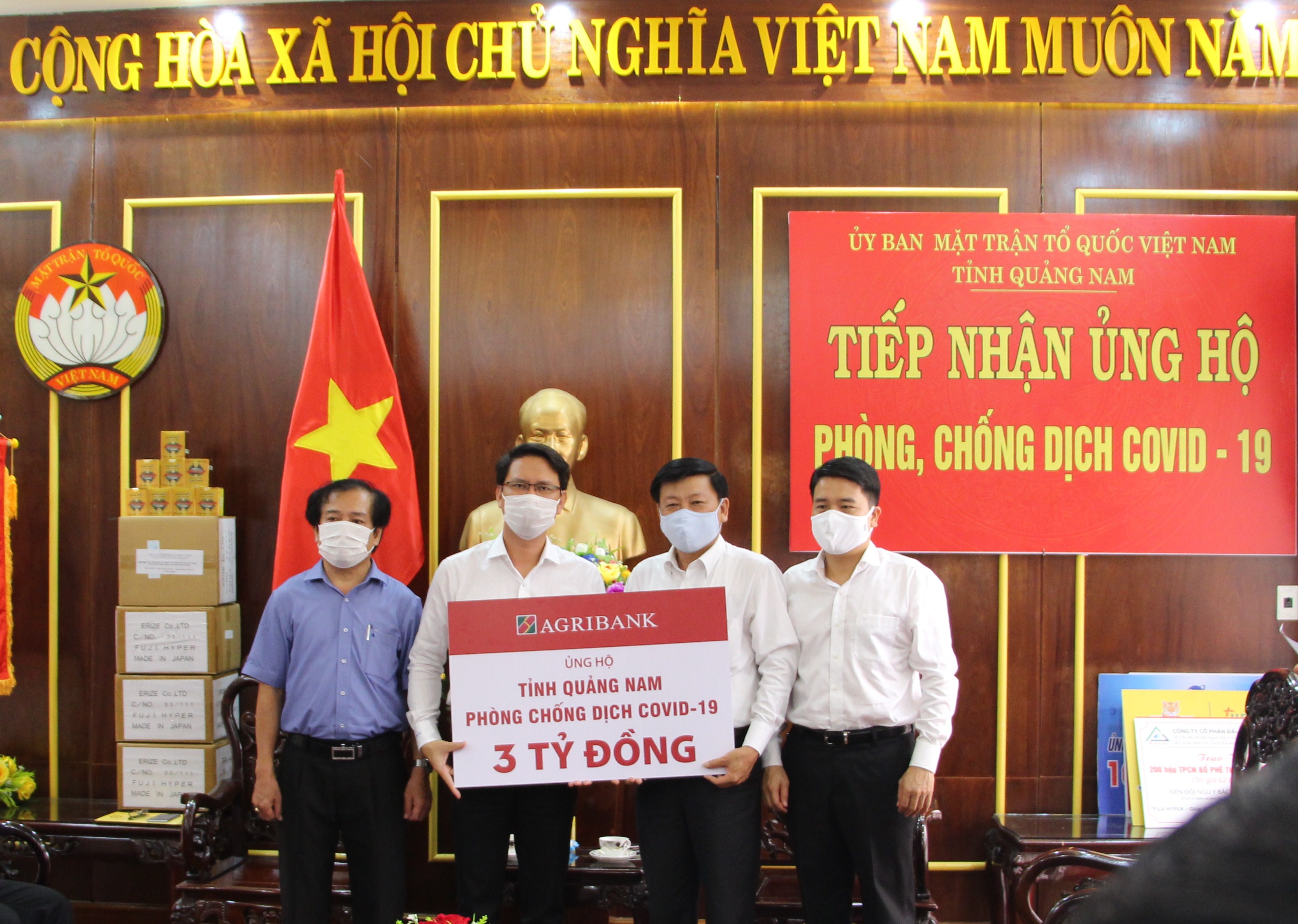 Lãnh đạo Ngân hàng Nông nghiệp-PTNT chi nhánh Quảng Nam trao biển ủng hộ 3 tỷ đồng