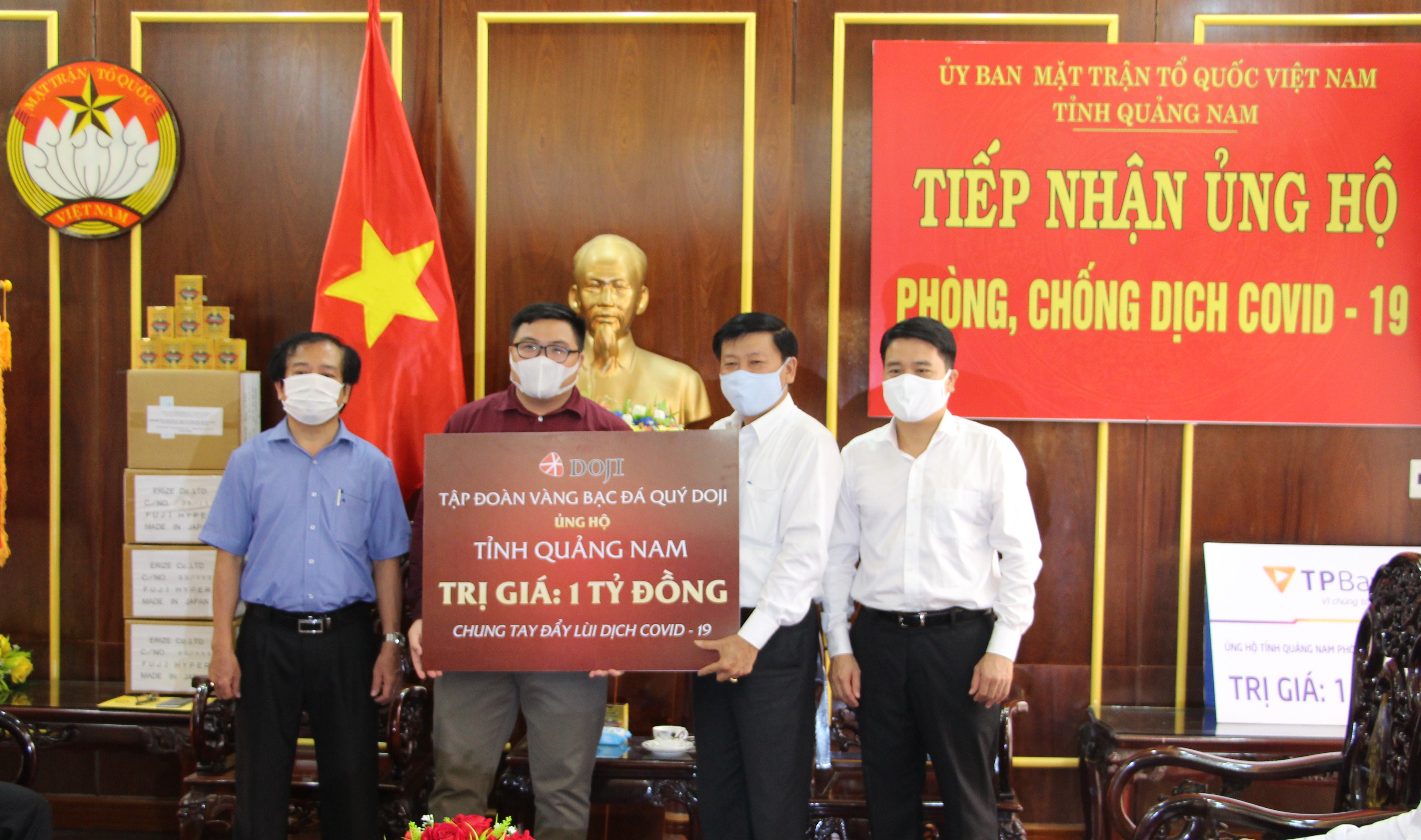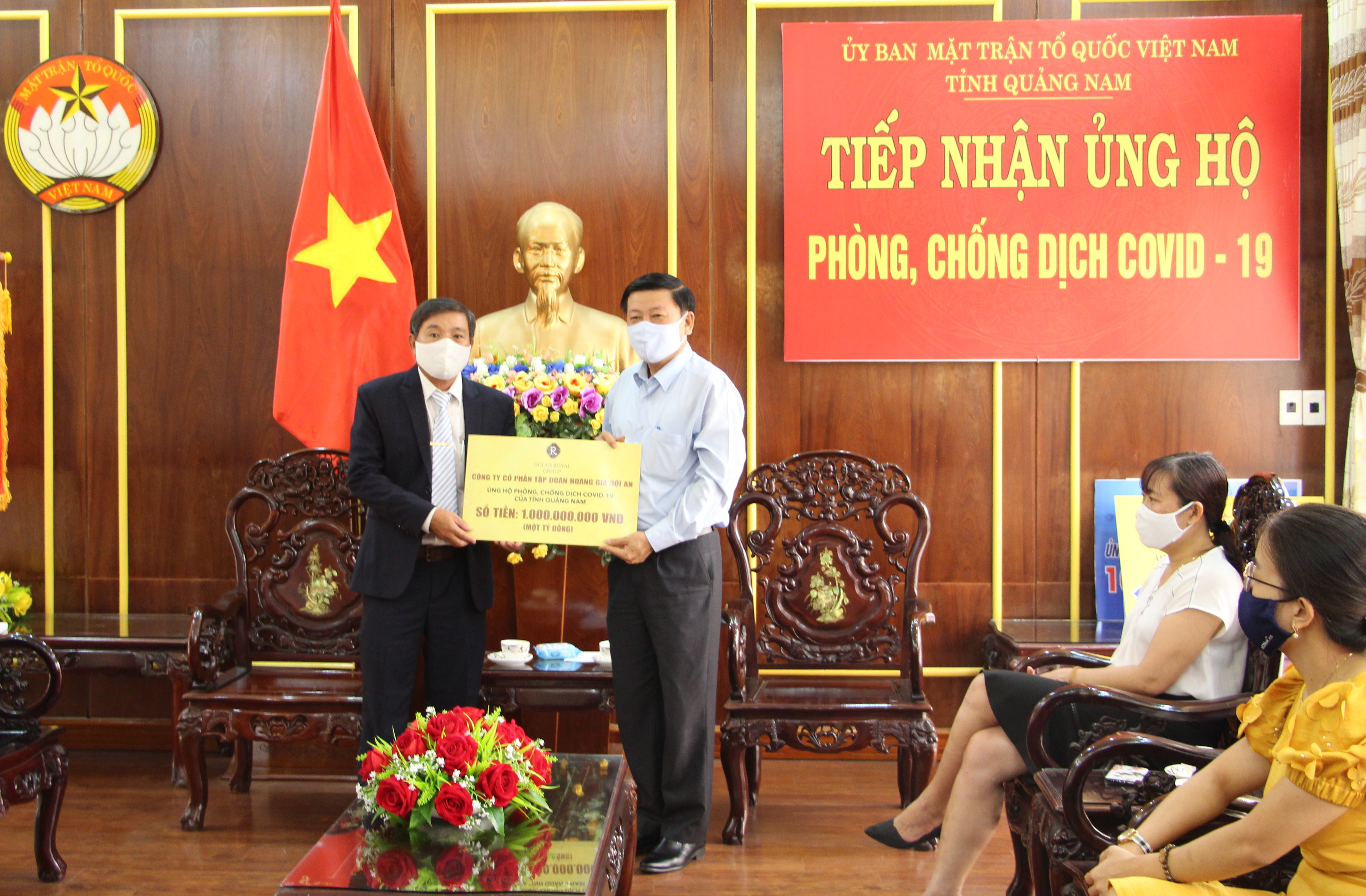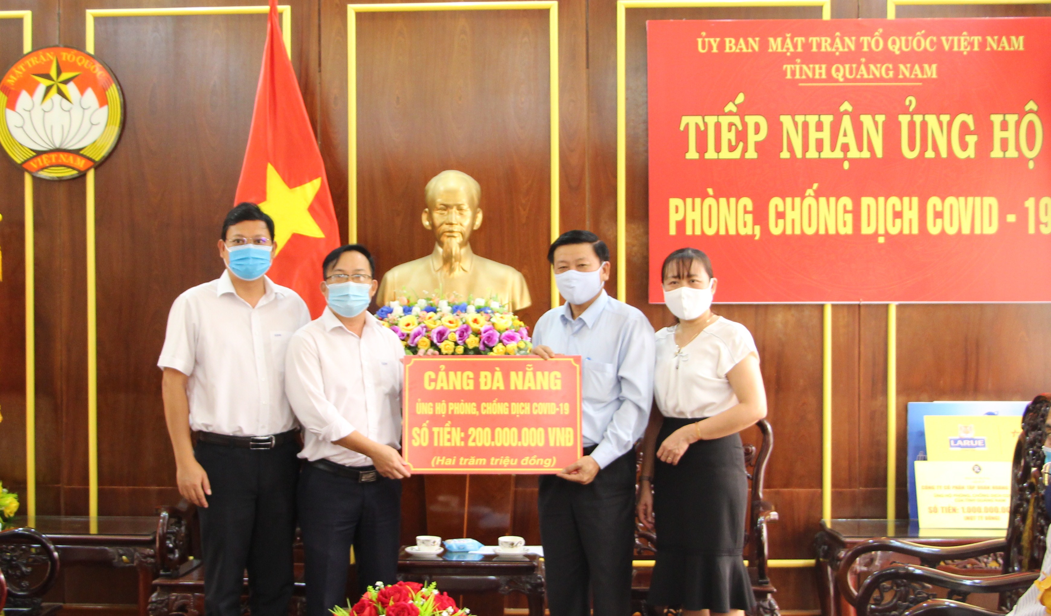 * Sáng ngày 4/8/2020, ông Lê Thái Bình- Phó Chủ tịch Ủy ban MTTQ Việt Nam tỉnh đại diện Ban Thường trực Ủy ban MTTQ Việt Nam tỉnh nhận biển trao tiền ủng hộ phòng, chống dịch Covid-19 từ Công ty cổ phần Tập đoàn Hoàng Gia Hội An (1 tỷ đồng) và Cảng Đà Nẵng (200 triệu đồng). Ông Đinh Phú Lộc- Phó Tổng giám đốc Tập đoàn Hoàng Gia Hội An mong muốn chia sẻ, đóng góp kinh phí cùng với chính quyền và toàn dân Quảng Nam, Đà Nẵng quyết tâm chiến thắng dịch Covid-19.