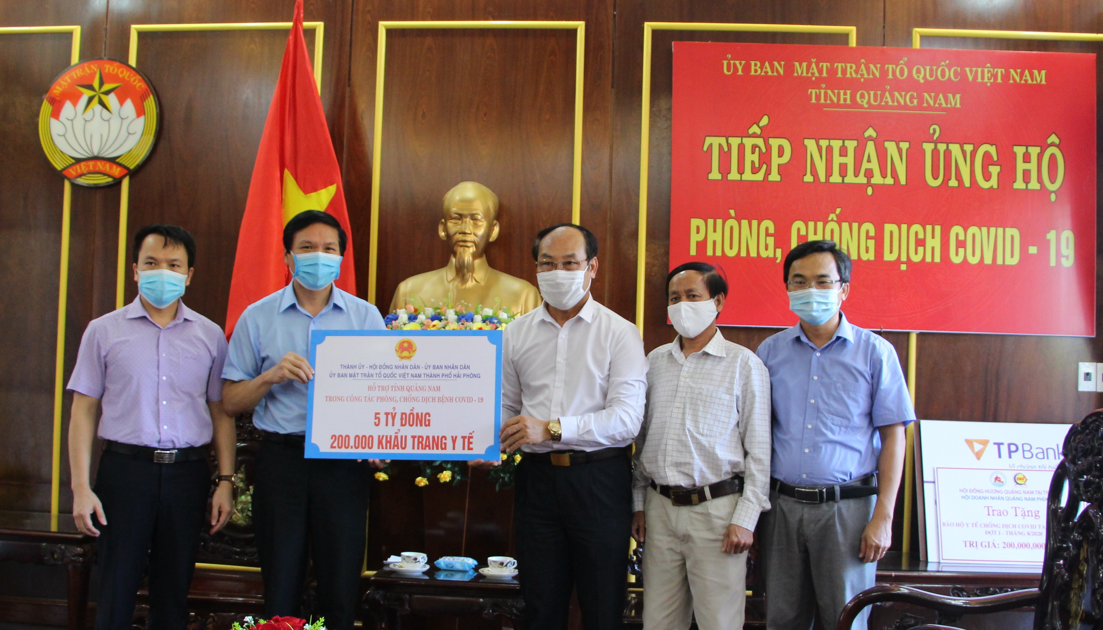 Tiến sĩ Trần Anh Cường- Phó giám đốc Sở Y tế thành phố Hải Phòng thay mặt lãnh đạo và Nhân dân Hải Phòng trực tiếp đến thăm hỏi và trao tiền, hàng ủng hộ cho Quảng Nam, ông chia sẻ: Tình hình dịch bệnh bùng phát tại các tỉnh miền Trung đợt này diễn biến rất phức tạp, vì vậy dưới sự chỉ đạo của Thành ủy Hải Phòng, đội ngũ y bác sĩ thành phố Hải Phòng đã xung phong lên đường tiếp lửa cho Đà Nẵng, Quảng Nam. Hy vọng với sự góp sức của cả nước, Quảng Nam, Đà Nẵng sẽ vượt qua và chiến thắng đại dịch