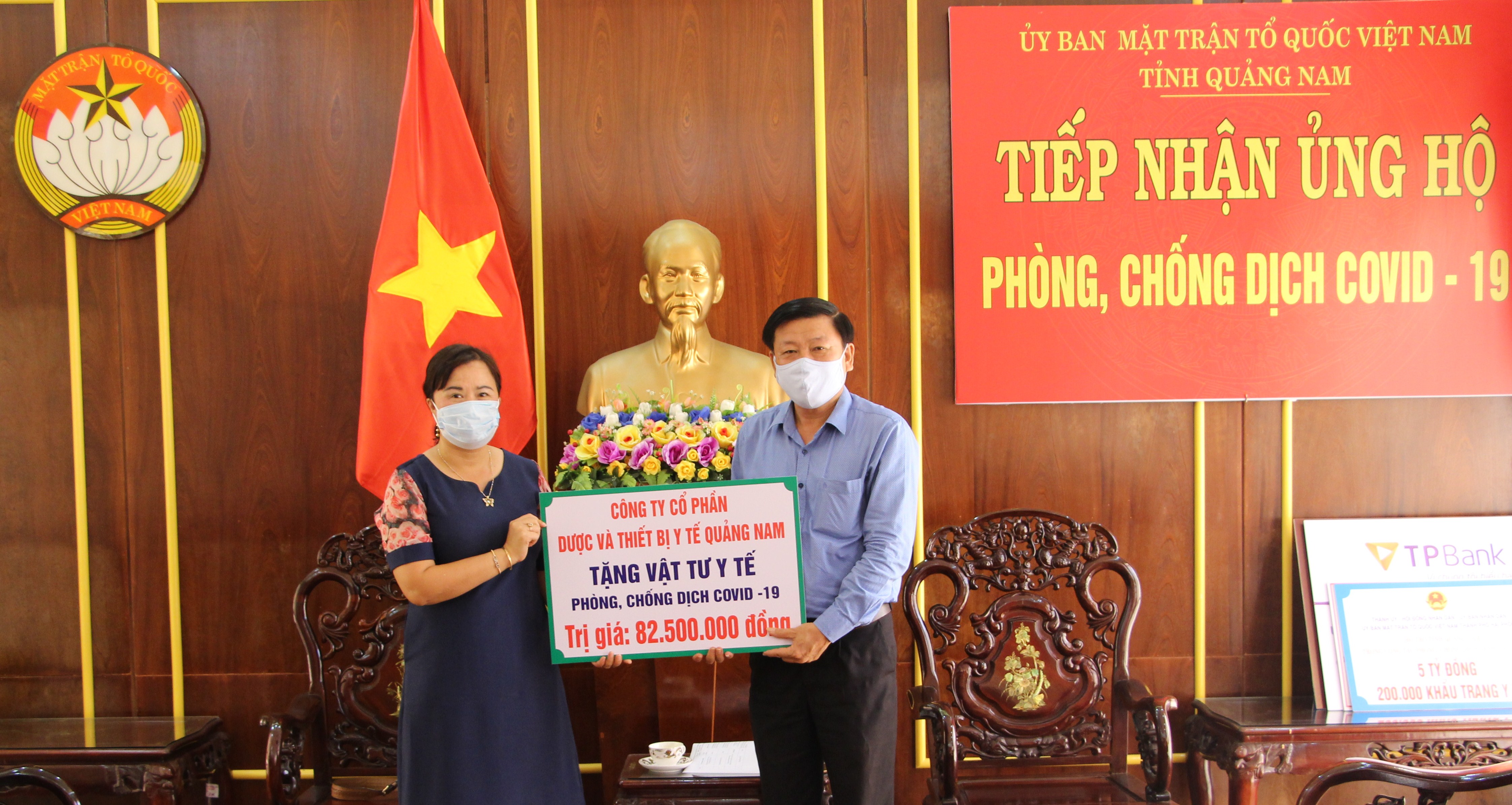 Công ty CP Dược và thiết bị y tế Quảng Nam ủng hộ 20 triệu tiền mặt và trang thiết bị y tế trị giá 62,5 triệu