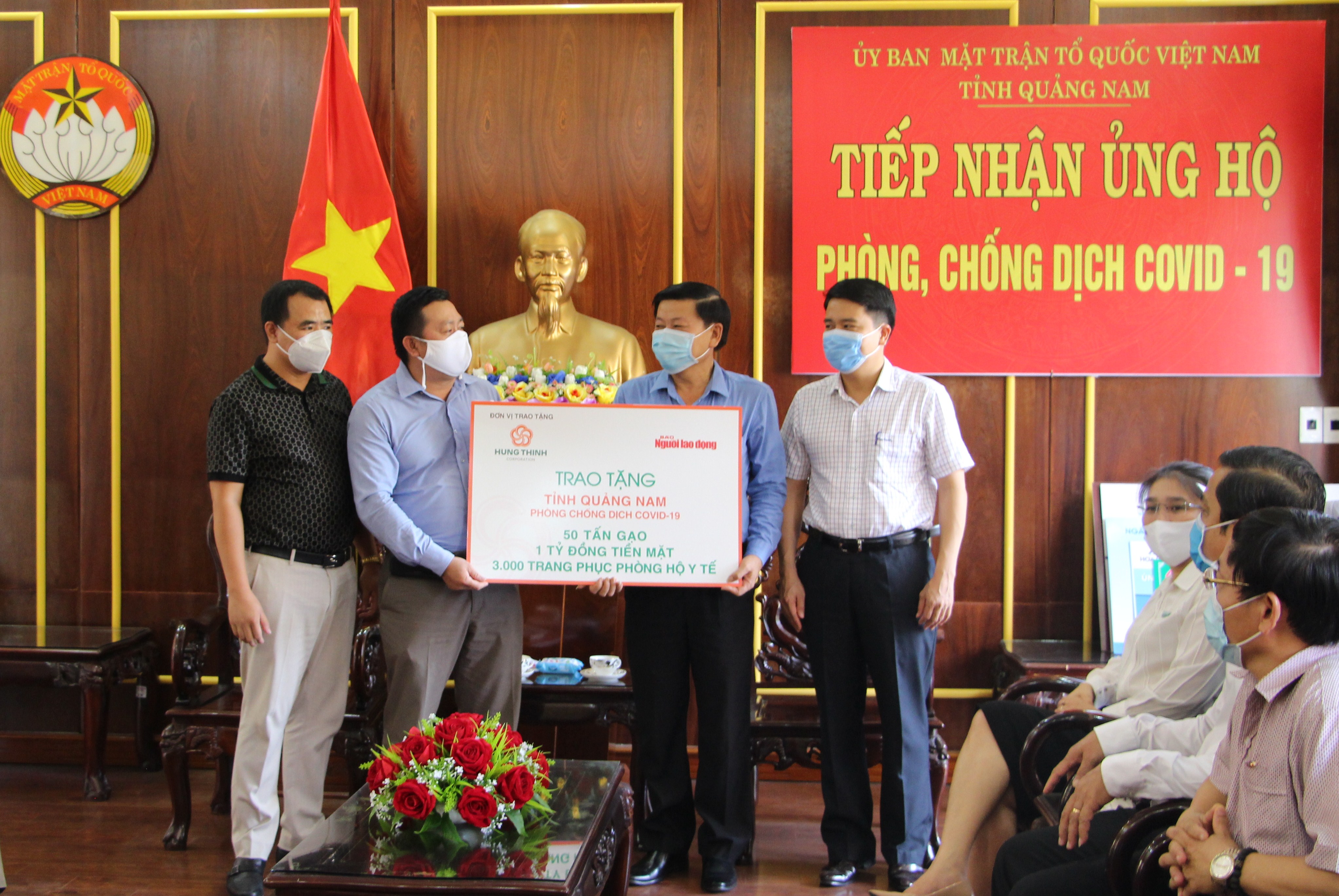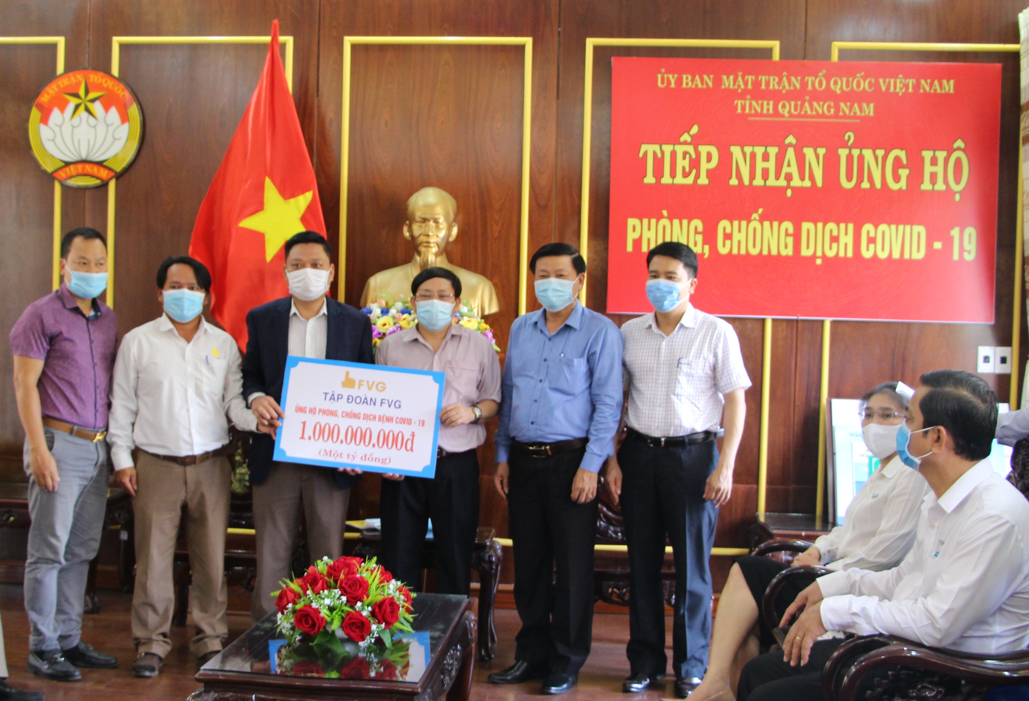 Chiều ngày 03/8/2020, ông Nguyễn Phi Hùng- Phó Chủ tịch Ủy ban MTTQ Việt Nam tỉnh tiếp nhận 6 thùng khẩu trang và 10 thùng trang phục phòng, chống dịch (tổng trị giá 100 triệu đồng) của Tập đoàn FVG do ông Vũ Cao Giang- Giám đốc Công ty Chu Lại- Hội An thành viên của Tập đoàn FVG trao tặng. Ông Nguyễn Phi Hùng ghi nhận và cảm kích tình cảm của công ty dành cho Quảng Nam và hứa sẽ chuyển ngay nguồn hàng ủng hộ đến các cơ sở y tế, các khu cách ly tập trung kịp thời cho công tác phòng, chống dịch.