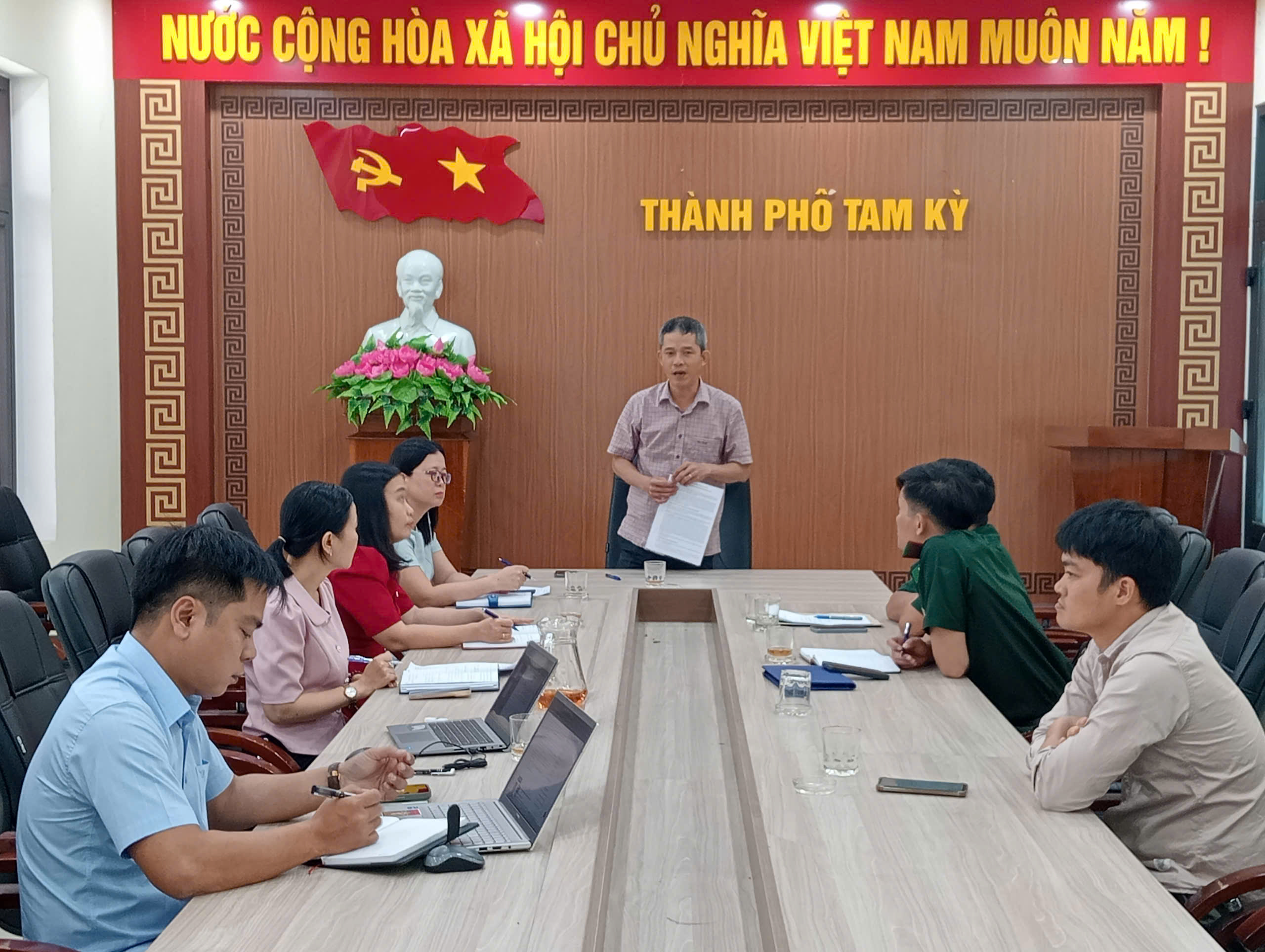 Ông Nguyễn Ba- UVBTV, Chủ tịch Uỷ ban MTTQ Việt Nam thành phố chủ trì buổi làm việc