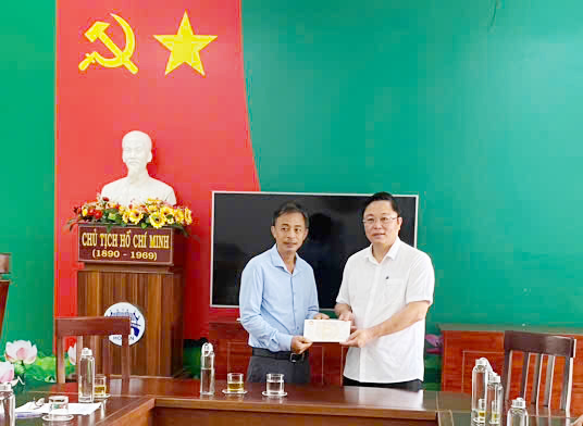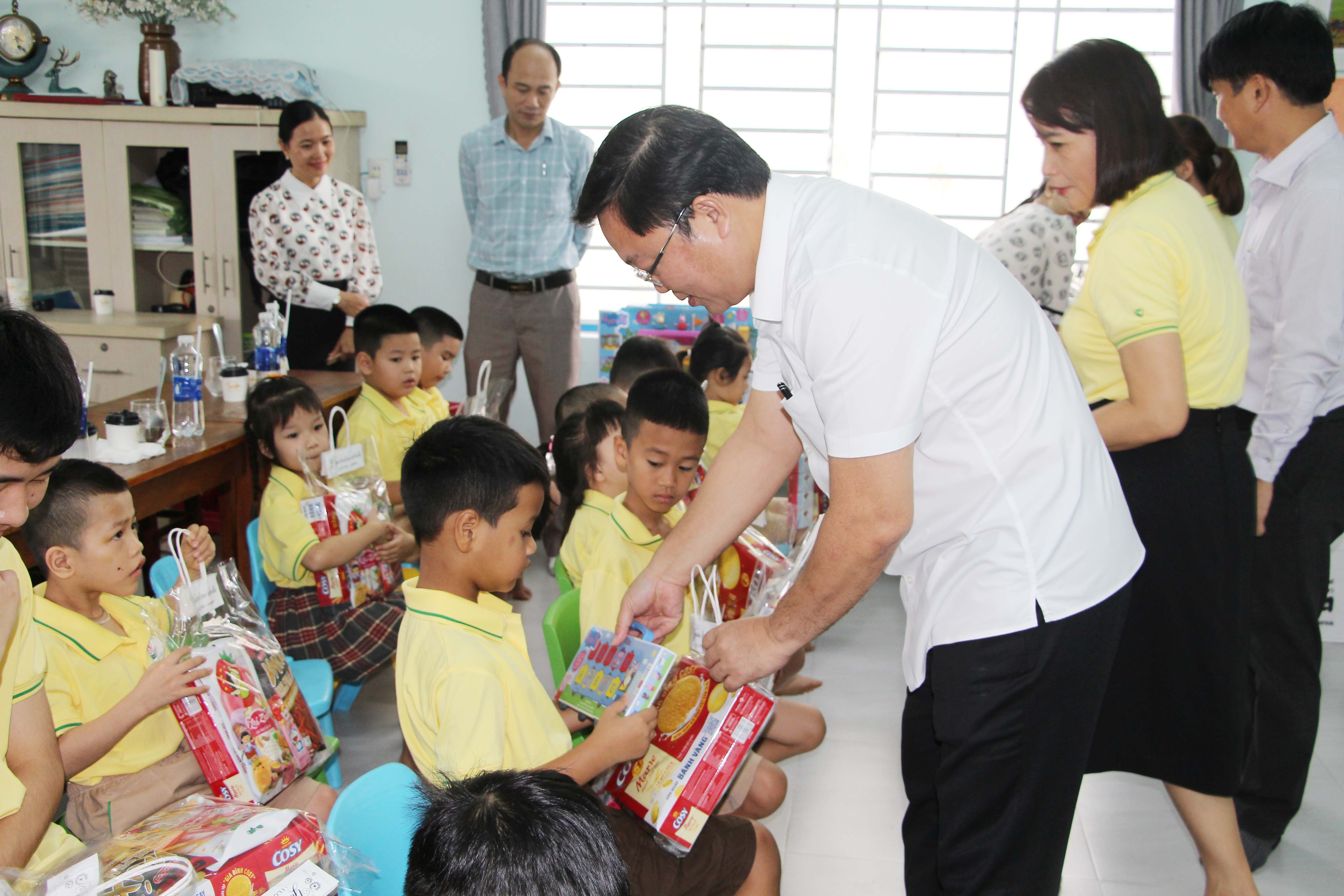 Ông Lê Trí Thanh, UVBTV Tỉnh ủy, Chủ tịch Ủy ban MTTQ Việt Nam tỉnh thăm và tặng quà cho trẻ em tại Cơ sở Bảo trợ xã hội Thiện Nhân (Tam Kỳ)