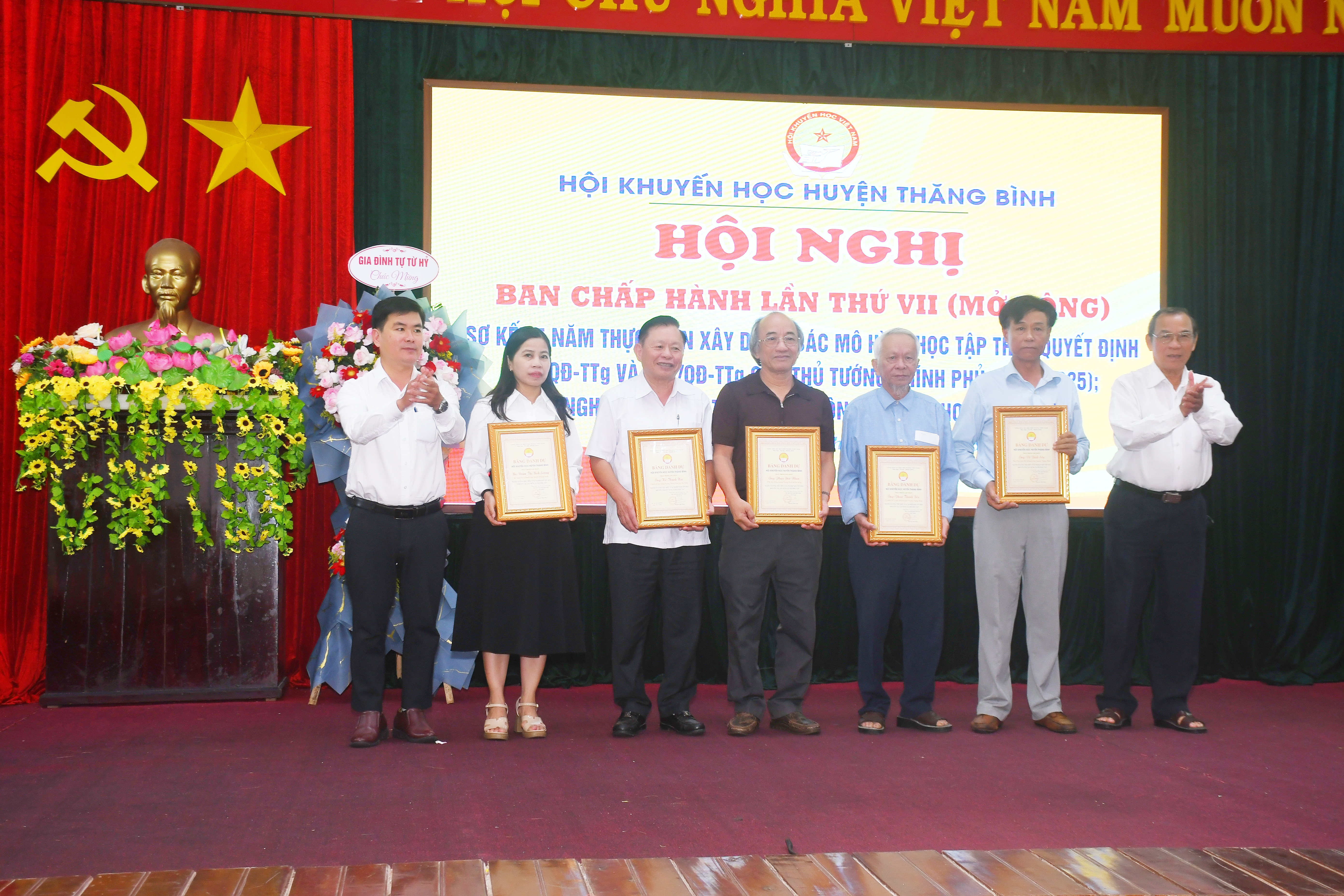trao bảng vinh danh cho những người có công trong phong trào khuyến học ở Thăng Bình