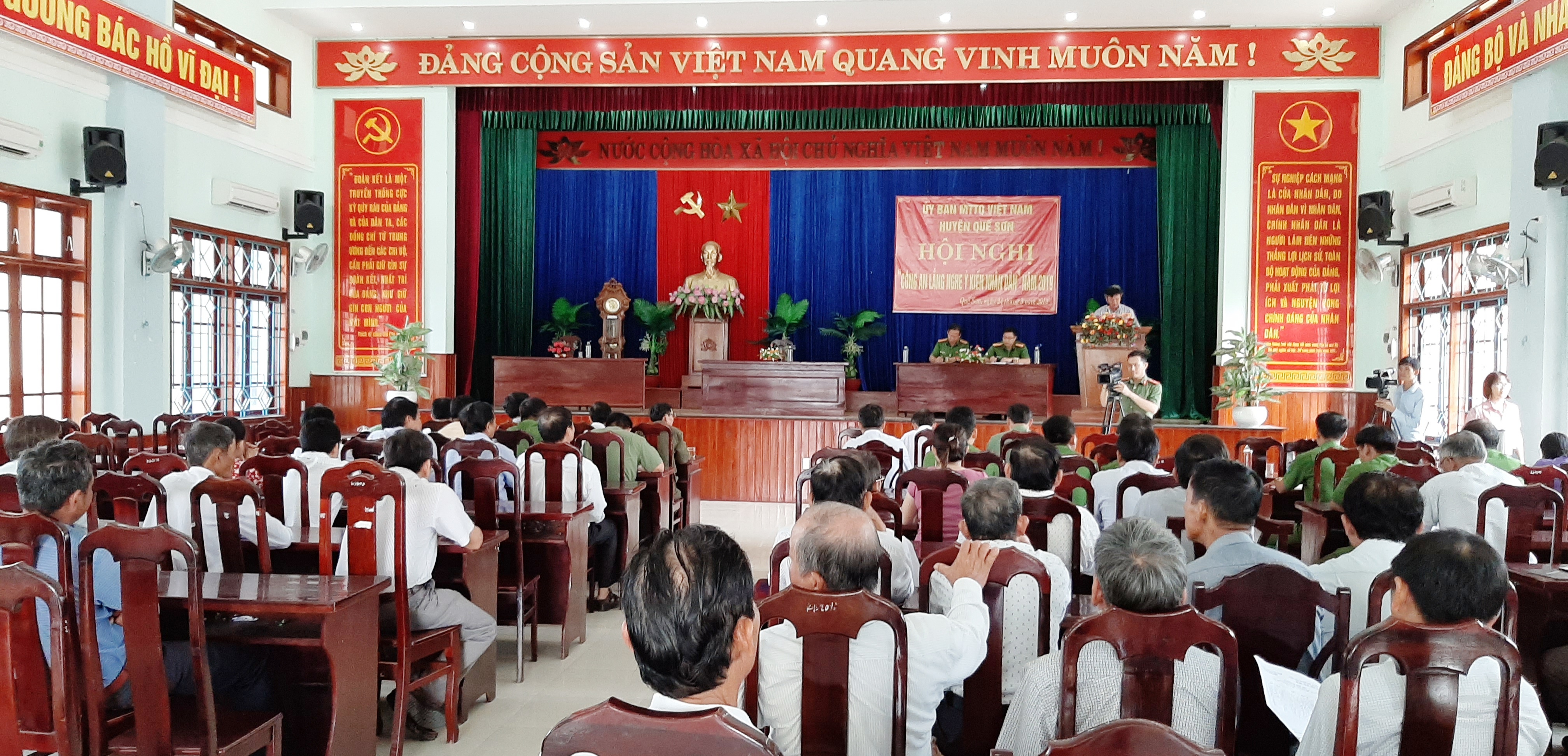 Vừa qua, Ban Thường trực Ủy ban MTTQ Việt Nam huyện Quế Sơn tổ chức Hội nghị “Công an lắng nghe ý kiến Nhân dân” năm 2019. Tham dự Hội nghị có Thượng tá Huỳnh Tấn Phúc, Phó Trưởng Phòng công tác Đảng-công tác chính trị Công an tỉnh Quảng Nam; ông Doãn Hào, HUV- Phó Chủ tịch HĐND huyện; Đại tá Phan Văn Bôi- Ủy viên BTV Huyện ủy- Trưởng Công an huyện; ông Lý Xuân Phong, Ủy viên Ban Thường vụ Huyện ủy- Chủ tịch Ủy ban MTTQ Việt Nam huyện; Lãnh đạo, Đội trưởng, Đội phó các Đội nghiệp vụ và Đồn Công an Hương An và hơn 120 đại biểu đại diện cho Nhân dân của các xã Quế Xuân 1, Quế Xuân 2, Quế Phú, Hương An và Quế Cường.