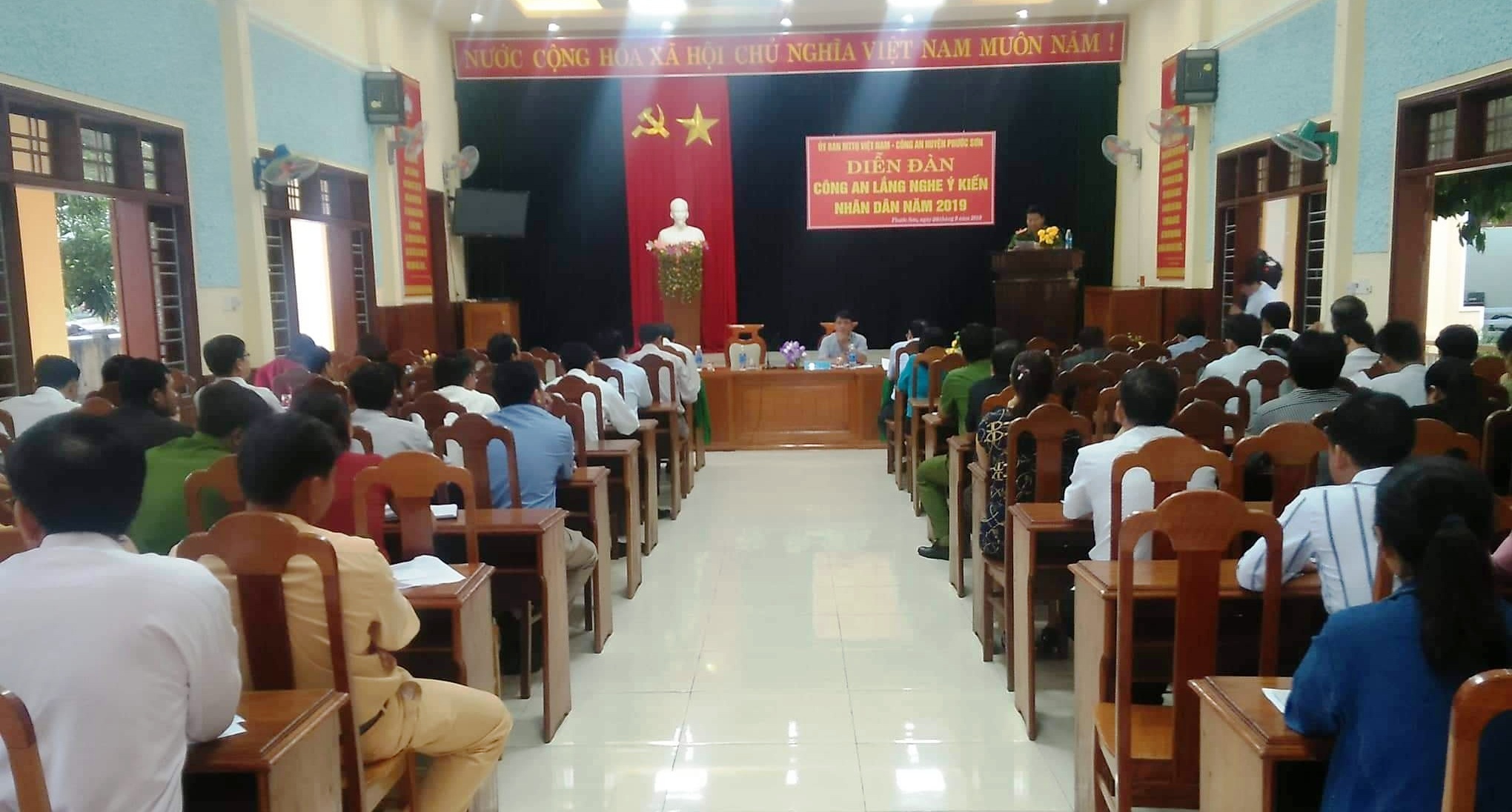 Sáng ngày 26/9, Ban Thường trực Uỷ ban MTTQ Việt Nam huyện và Công an huyện Phước Sơn phối hợp tổ chức Diễn đàn “Công an lắng nghe ý kiến Nhân dân năm 2019. Chủ trì Hội nghị, đồng chí Nguyễn Văn Bằng-UVTV, Chủ tịch Ủy ban MTTQ Việt Nam huyện và đồng chí, Thượng tá Lê Nho Tâm-UVTV, Trưởng Công an huyện. Đến dự và chỉ đạo Hội nghị có đồng chí Phạm Thế Quyền-Bí thư Huyện ủy, Chủ tịch HĐND huyện.