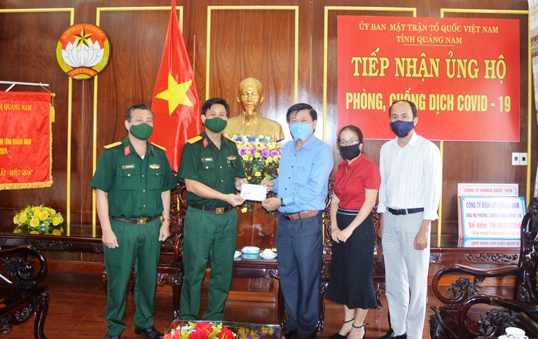 * Chiều ngày 06/4/2020, ông Lê Thái Bình- Phó Chủ tịch Uỷ ban MTTQ Việt Nam tỉnh tiếp nhận 10 triệu đồng từ Công ty Xe máy Honda Quốc Tiến tại Quảng Nam; Hội Liên hiệp Phụ nữ tỉnh ủng hộ 10 triệu đồng; Công ty Cổ phần Tập đoàn Lộc trời ủng hộ 5 tấn gạo; Công ty Bảo hiểm PJICO Quảng Nam ủng hộ 3.517.000 đồng.