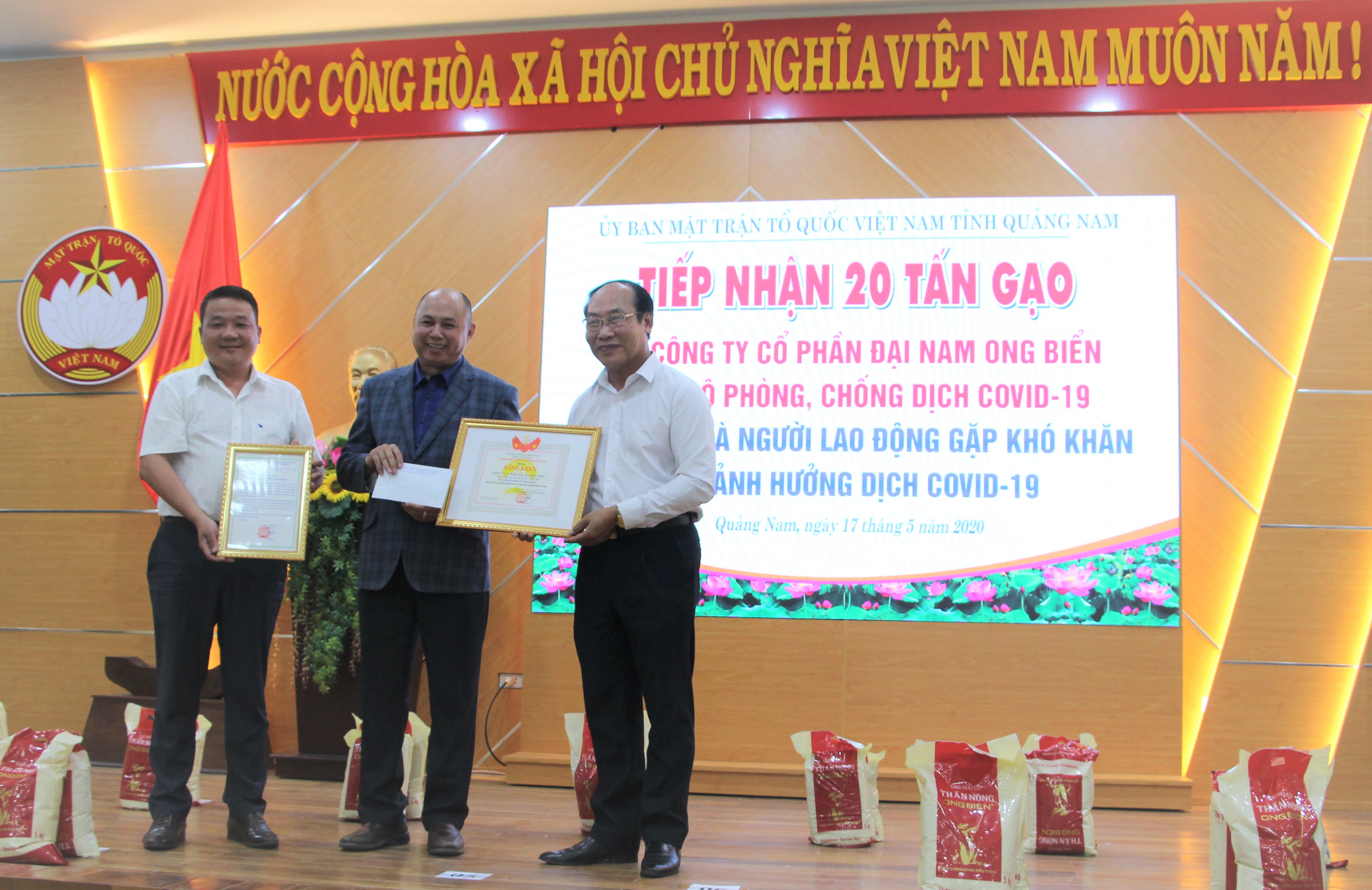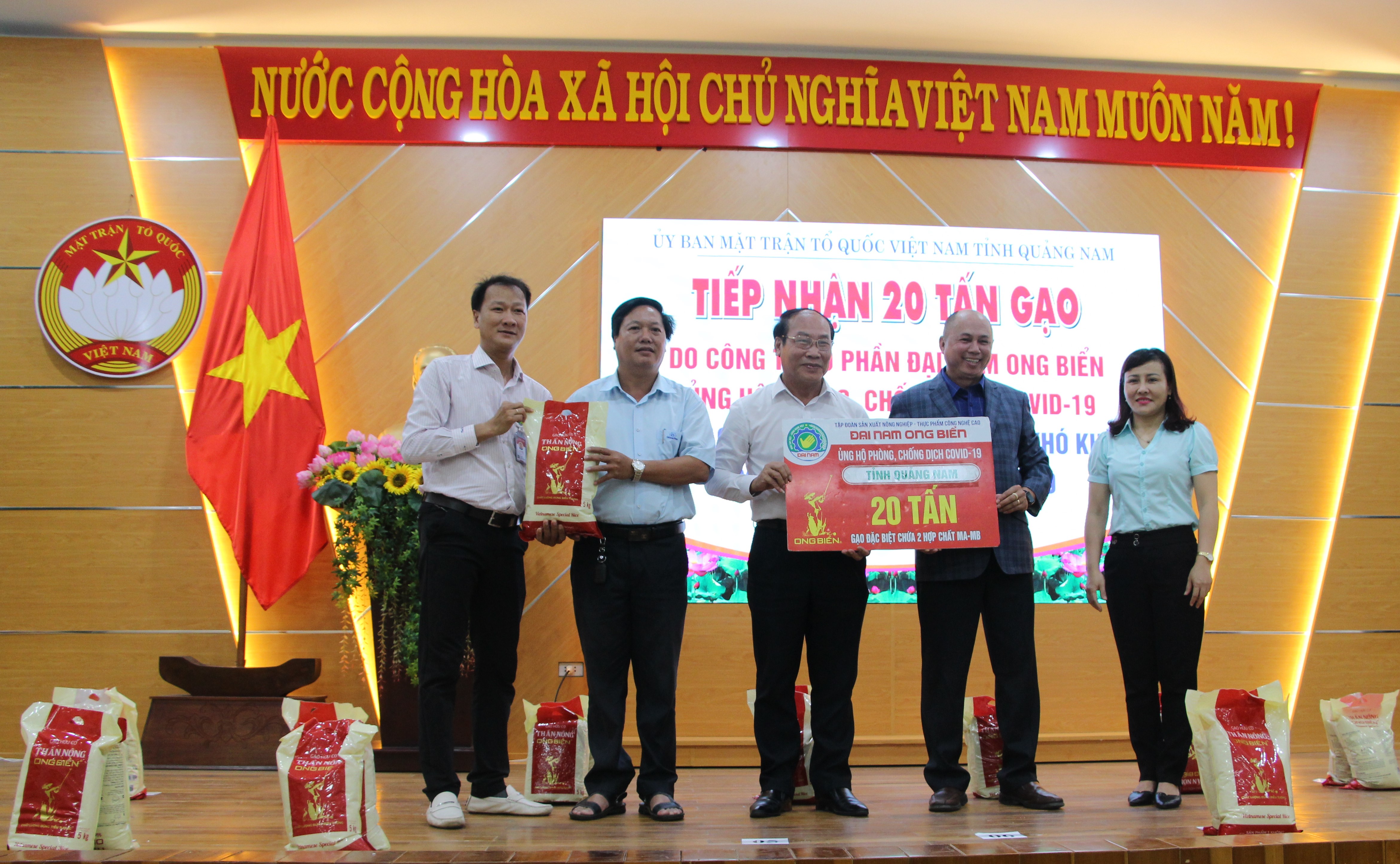 Tại buổi tiếp nhận, ông Trần Ngọc Ký- Cố vấn thương mại Quốc tế đại diện Công ty phát biểu: Hưởng ứng Thư của Tổng Bí thư, Chủ tịch nước Nguyễn Phú Trọng và Ủy ban Trung ương MTTQ Việt Nam kêu gọi cả nước chung tay phòng, chống dịch Covid, Công ty Cổ phần Đại Nam Ong biển mong muốn đồng hành, chia sẻ tình yêu thương qua những hạt gạo nghĩa tình để giúp bà con cùng vượt qua đại dịch.