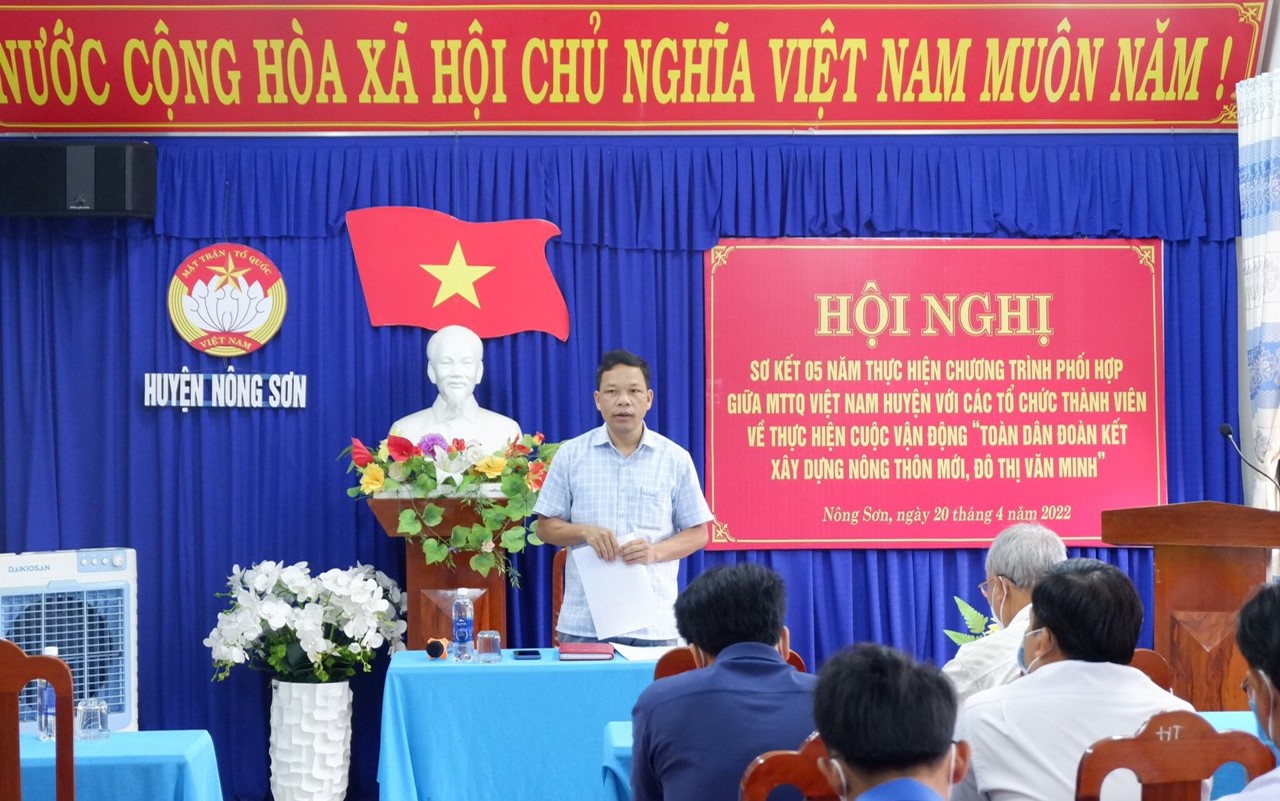 Tại hội nghị Ủy ban MTTQ Việt Nam và các tổ chức thành viên huyện thống nhất ký kết Kế hoạch hiệp thương phân công nhiệm vụ giữa Ủy ban MTTQ Việt Nam với các tổ chức thành viên huyện tham gia thực hiện Cuộc vận động “Toàn dân đoàn kết xây dựng nông thôn mới, đô thị văn minh” trên địa bàn huyện năm 2022.