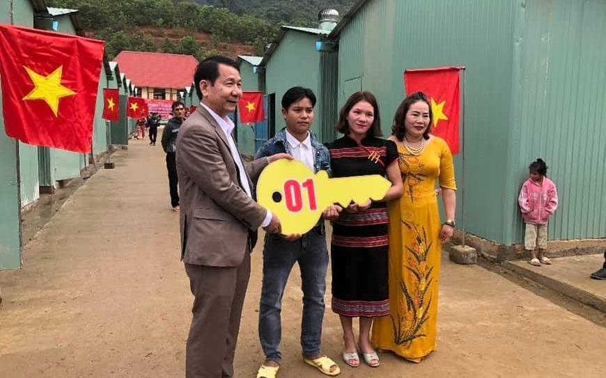 Ông Lý Minh Tám trao 16 ngôi nhà lắp ghép cho người dân xã Phước Kim, huyện Phước Sơn