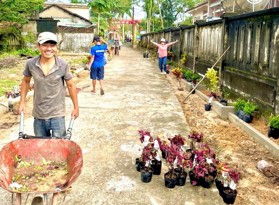 Nhân dân tham gia trồng những tuyến đường hoa chào Ngày hội