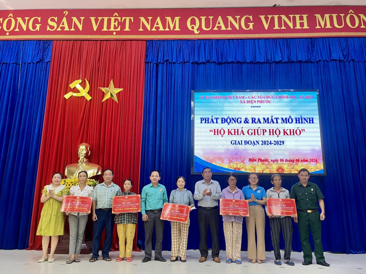 Tại buổi phát động, Ủy ban MTTQ Việt Nam xã thông qua Quyết định thành lập mô hình gồm 17 thành viên do Chủ tịch Ủy ban MTTQ Việt Nam xã làm Trưởng ban; đồng thời, phát động mô hình trong các khu dân cư trên địa bàn xã. Theo đó, hằng năm, mỗi khu dân cư vận động từ 50 đến 100 suất quà tặng cho hộ khó khăn trong dịp tết; 100% khu dân cư vận động Quỹ “Vì người nghèo” để hỗ trợ xây dựng và sửa chữa nhà; mỗi tổ chức hội, đoàn thể đăng ký đảm nhận thực hiện có hiệu quả nội dung công trình, phần việc trong giảm nghèo bền vững, phấn đấu mỗi năm hỗ trợ từ 01 đến 02 phương tiện sinh kế; Mặt trận và các tổ chức chính trị - xã hội xã hàng năm hỗ trợ xây dựng, sửa chữa từ 01 đến 02 nhà. Riêng trong năm 2024 sửa chữa từ 03 đến 05 nhà. Phấn đấu đến năm 2030 toàn xã không còn hộ nghèo.