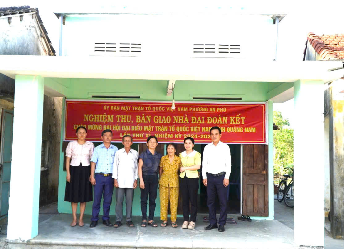 Trong ngày 23/8/2024, Mặt trận phường An Phú đã tổ chức lễ bàn giao Nhà Đại đoàn kết cho bà Trần Thị Tuyết, một hộ cận nghèo trên địa bàn phường. Đây là một trong những hoạt động thiết thực nhằm hỗ trợ các hộ gia đình khó khăn, giúp họ có một nơi ở ổn định và cải thiện chất lượng cuộc sống. Hoạt động này thể hiện tinh thần tương thân tương ái, sự quan tâm của Mặt trận Tổ quốc đến đời sống của người dân.