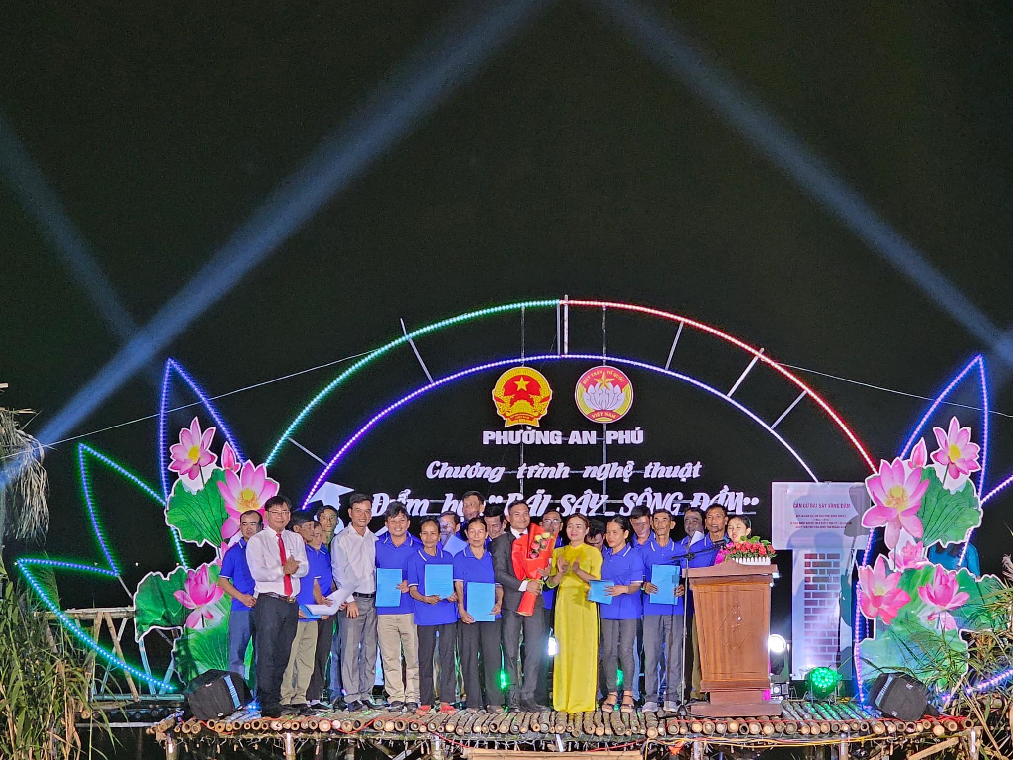 Chương trình Nghệ thuật với chủ đề “Điểm hẹn Bãi Sậy Sông Đầm” là điểm nhấn đáng chú ý của sự kiện. Chương trình được chia thành ba chương: "Những tháng ngày lửa đạn," "Bình yên trên quê hương," và "An Phú khát vọng tình yêu," với nhiều tiết mục văn nghệ đặc sắc, dàn dựng công phu. Các tiết mục không chỉ làm sống lại những ký ức hào hùng của dân tộc mà còn truyền tải thông điệp về khát vọng hòa bình và tình yêu quê hương, đất nước.