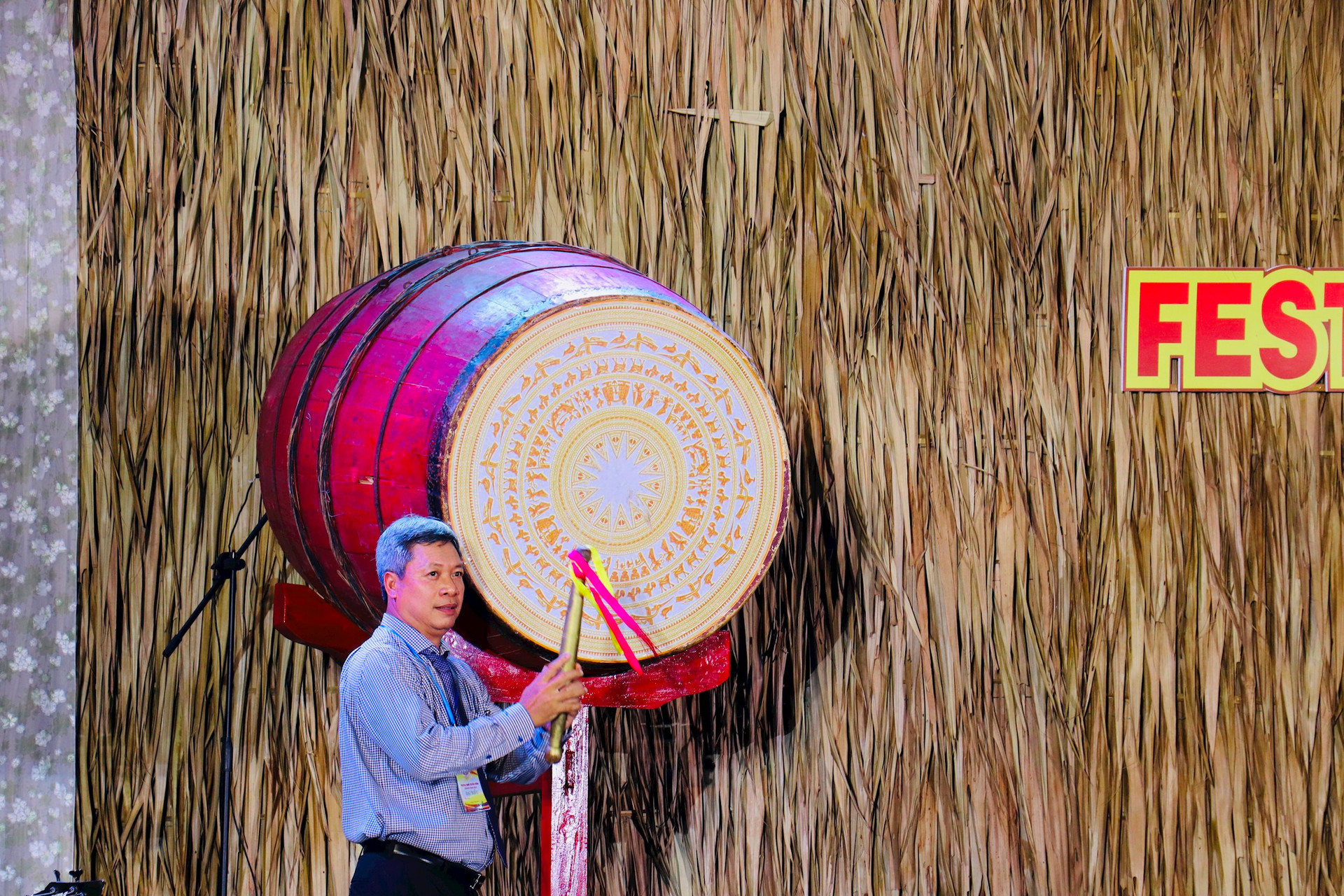 Ông Hồ Quang Bửu- TUV, Phó Chủ tịch UBND tỉnh đánh trống khai mạc Lễ hội. Ảnh PV