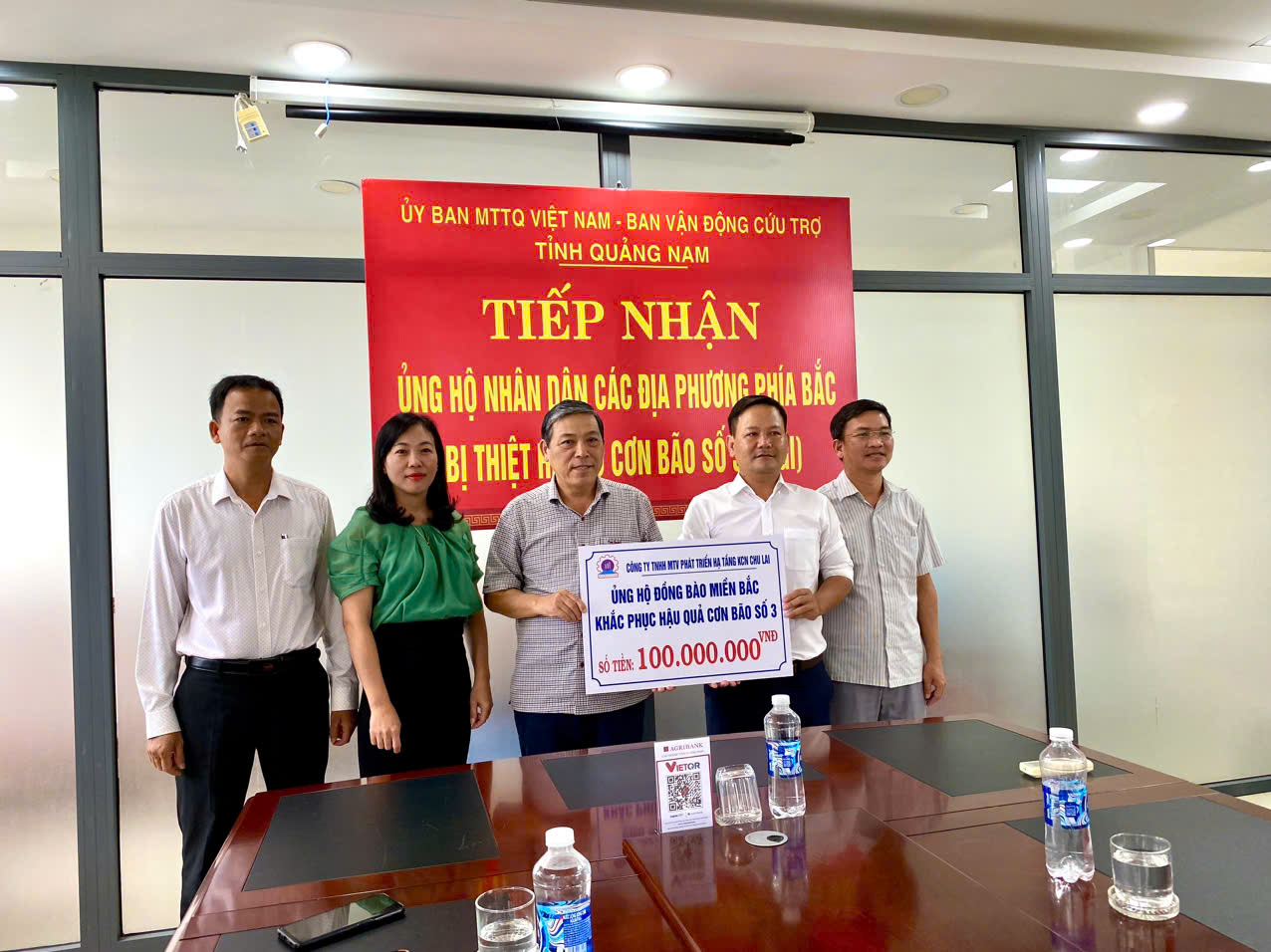 * Chiều ngày 17/9, Công ty TNHH MTV Phát triển hạ tầng KCN Chu Lai đến trao ủng hộ 100 triệu đồng hỗ trợ cho Nhân dân các địa phương các tỉnh phía Bắc bị thiệt hại do cơn bão số 3 (YAGI)