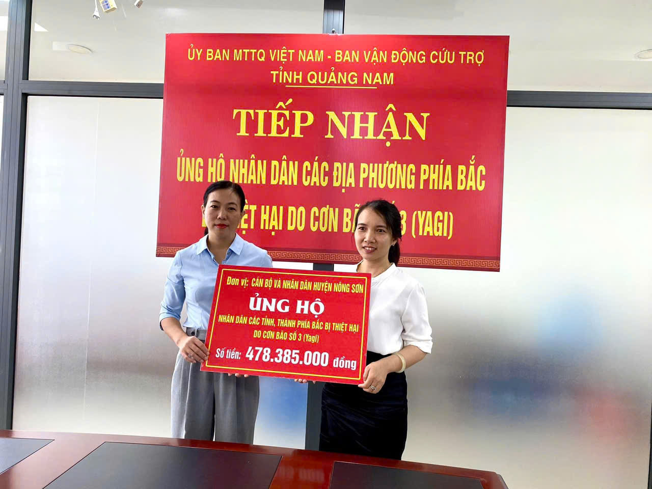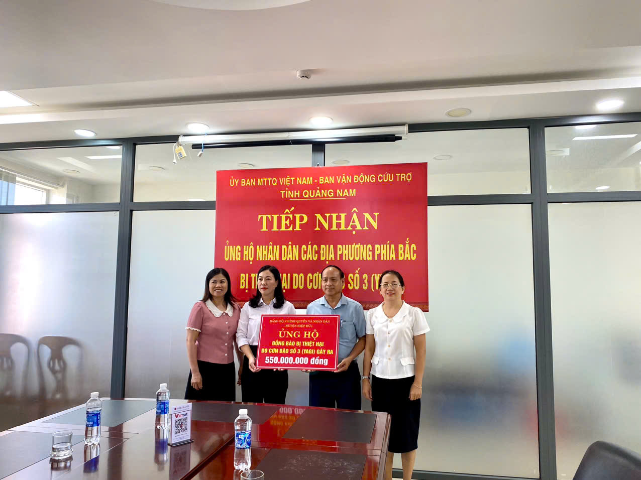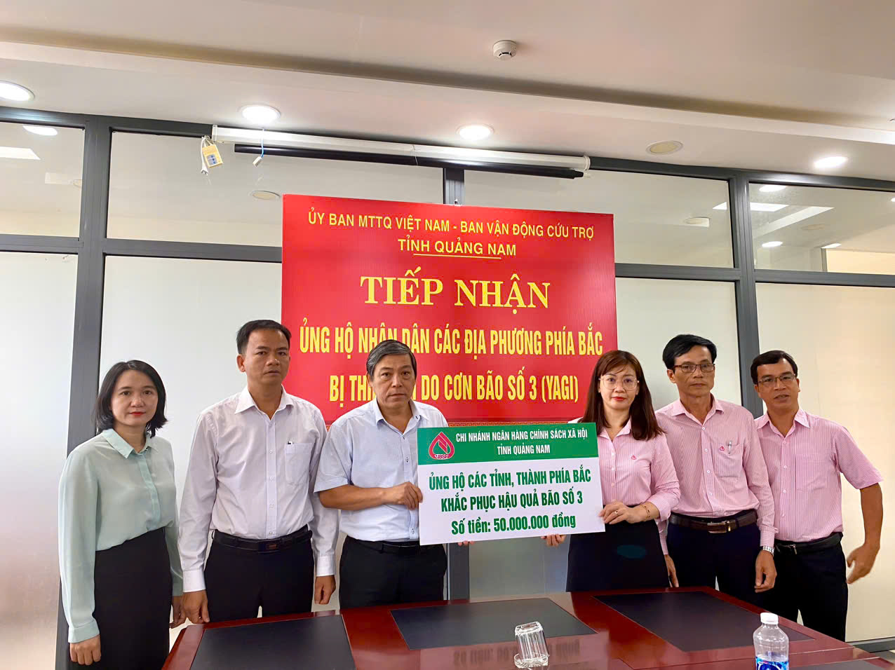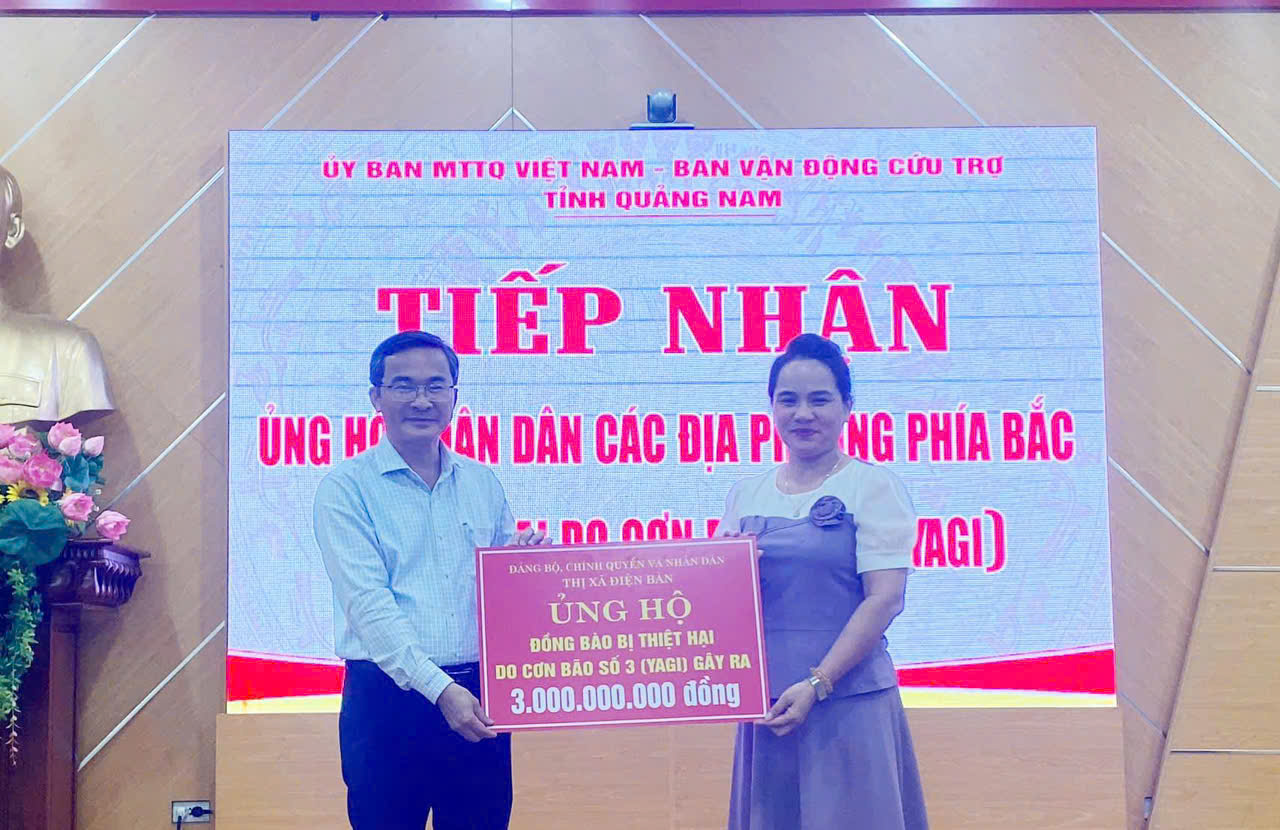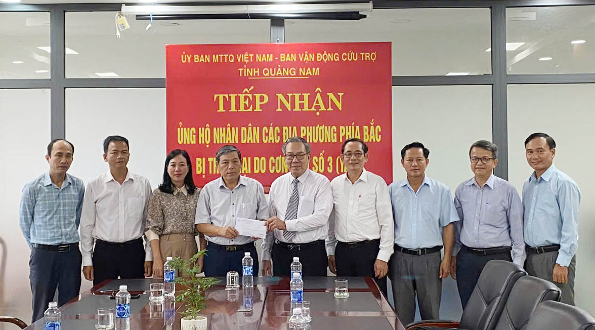 * Sáng ngày 13/9, chi nhánh Ngân hàng chính sách xã hội tỉnh Quảng Nam đã trao ủng hộ kinh phí 50 triệu đồng và Hội Doanh nhân trẻ Quảng Nam ủng hộ 100 triệu đồng cho Ủy ban MTTQ Việt Nam tỉnh Quảng Nam. Số tiền này sẽ được sử dụng để hỗ trợ các tỉnh phía Bắc, nơi đang phải đối mặt với khó khăn do thiên tai và bão lũ.
