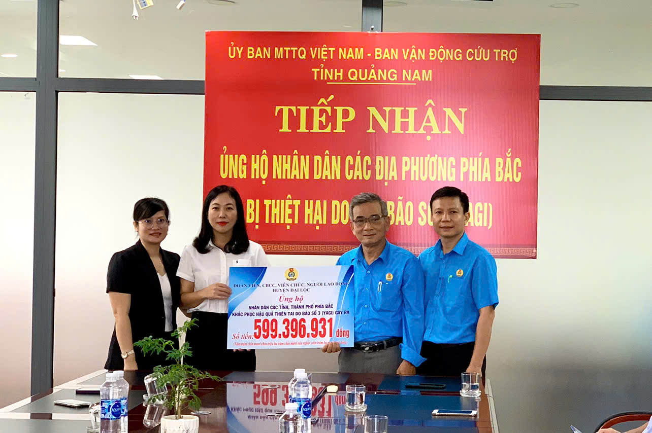 * Sáng ngày 9/10, Đoàn viên, Cán bộ, Công chức, người lao động huyện Đại Lộc ủng hộ Nhân dân các tỉnh, thành phía Bắc khắc phục hậu quả thiên tai số tiền gần 600 triệu đồng. Trường Cao đẳng Quảng Nam ủng hộ hơn 105 triệu đồng