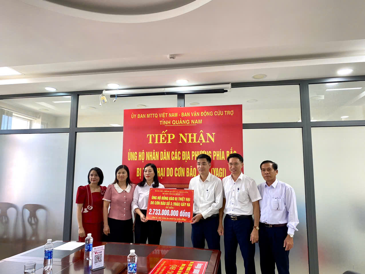 * Chiều ngày 30/9, tại cơ quan Ủy ban MTTQ Việt Nam tỉnh, Đảng bộ, chính quyền và Nhân dân huyện Thăng Bình đã trao kinh phí 2,733 tỷ đồng và huyện Hiệp Đức đã trao kinh phí 550 triệu đồng ủng hộ các tỉnh phía Bắc khắc phục hậu quả thiên tai.