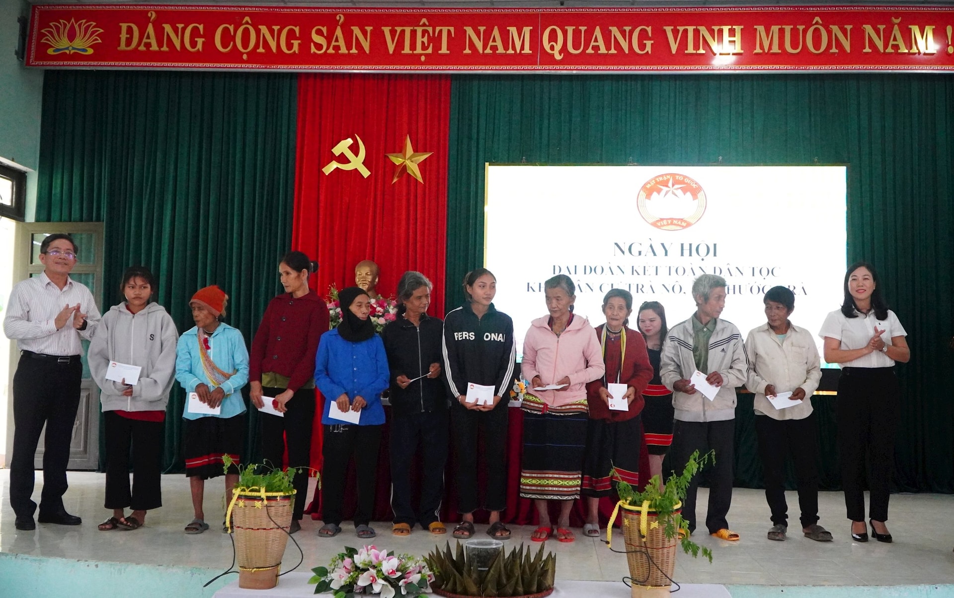 Tại Ngày hội, thay mặt lãnh đạo tỉnh, ông Trần Nam Hưng đã trao bảng tượng trưng hỗ trợ xây dựng nhà Đại đoàn kết cho 01 hộ gia đình có hoàn cảnh khó khăn trị giá 60 triệu đồng; tặng 10 suất quà cho hộ nghèo, hộ cận nghèo; đại diện lãnh đạo huyện, ông Nguyễn Văn Tỉnh đã trao quà cho khu dân cư; lãnh đạo Ủy ban MTTQ Việt Nam xã, Chi ủy Chi bộ, các chi hội khu dân cư tổ chức khen thưởng cho 01 tập thể và 03 cá nhân có thành tích tiêu biểu trong tham gia thực hiện Cuộc vận động “Toàn dân đoàn kết xây dựng nông thôn mới, đô thị văn minh” và phong trào thi đua tại khu dân cư, tặng quà 15 suất quà cho các em học sinh có hoàn cảnh đặc biệt khó khăn và tặng 02 suất quà cho các hộ nghèo, khó khăn trên địa bàn khu dân cư./.