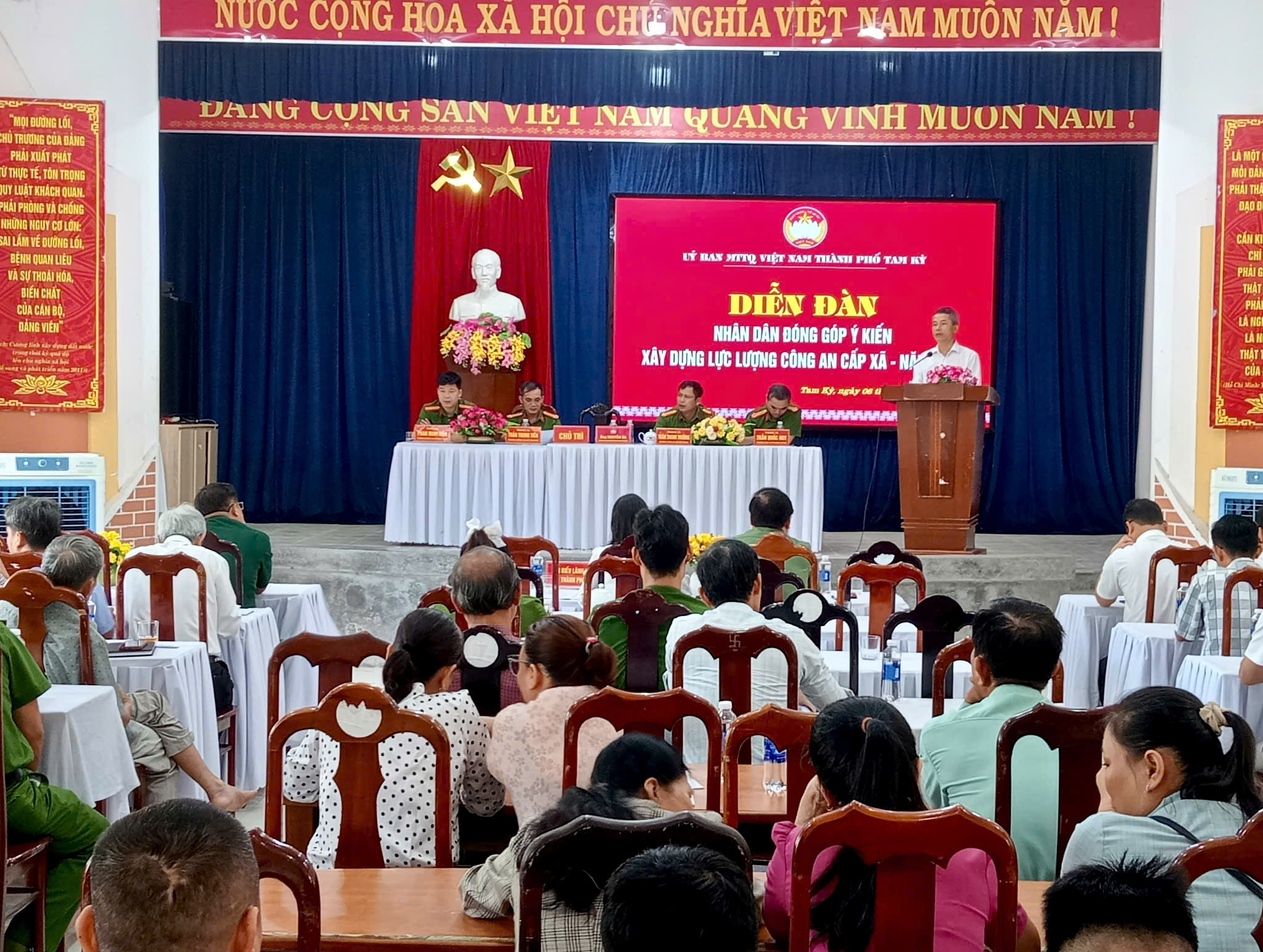 Chủ trì Diễn đàn có ông Nguyễn Ba – Ủy viên Ban Thường vụ Thành ủy, Chủ tịch Ủy ban MTTQ Việt Nam thành phố Tam Kỳ; Trung tá Trần Trung Tiến – Trưởng Công an xã Tam Phú; Thiếu tá Phan Minh Tiến – Trưởng Công an xã Tam Thanh; Trung tá Trần Thanh Trường – Trưởng Công an xã Tam Thăng; và Trung tá Trần Quốc Huy – Trưởng Công an phường An Phú.
