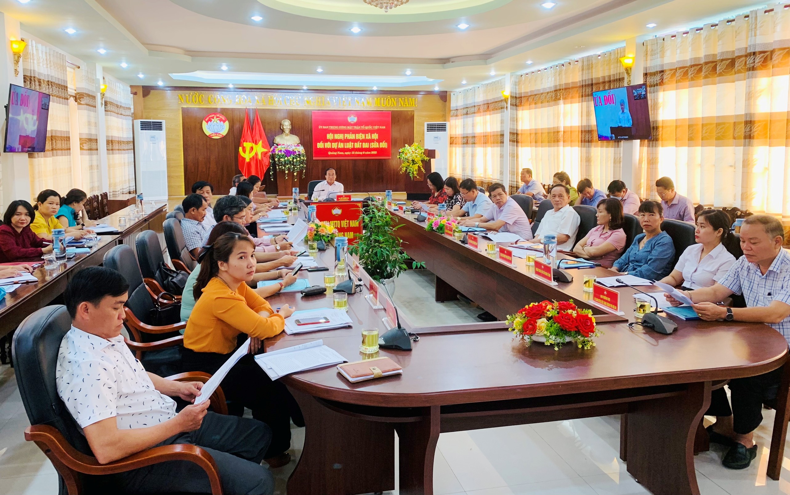 Tại điểm cầu tỉnh Quảng Nam, ông Võ Xuân Ca - UVBTV Tỉnh ủy, Chủ tịch Ủy ban MTTQ Việt Nam tỉnh chủ trì Hội nghị; tham dự có Ban Thường trực Ủy ban MTTQ Việt Nam tỉnh; đại diện lãnh đạo Sở Tài Nguyên và Môi trường; đại diện lãnh đạo các tổ chức chính trị - xã hội tỉnh; thành viên Hội đồng tư vấn về Dân chủ - Pháp luật Ủy ban MTTQ Việt Nam tỉnh; cán bộ chuyên môn các Ban và Văn phòng Ủy ban MTTQ Việt Nam tỉnh, cùng đại diện lãnh đạo Ủy ban MTTQ Việt Nam 12/18 huyện, thị xã, thành phố được triệu tập.