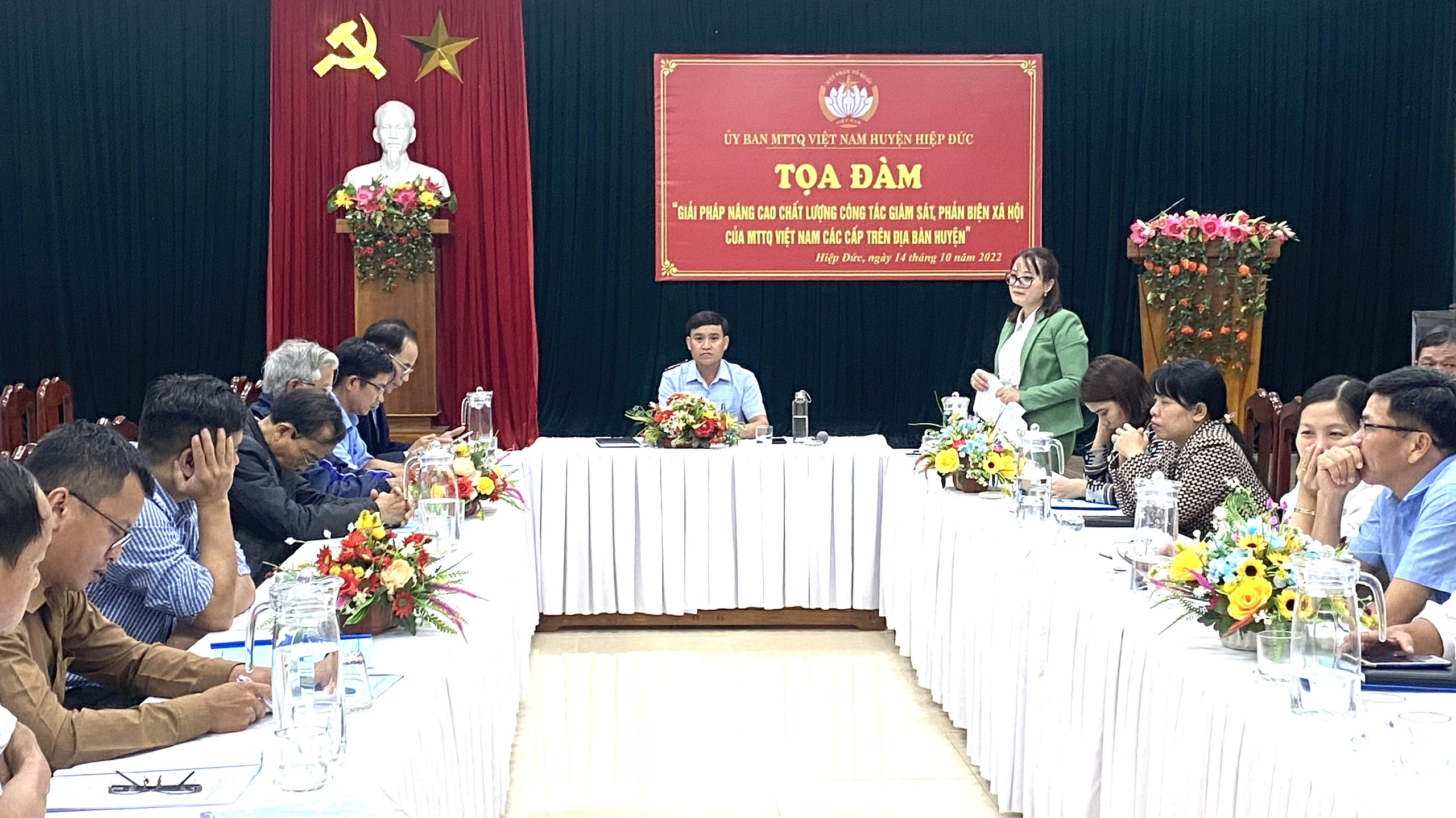 Tại buổi Tọa đàm, các đoàn thể chính trị - xã hội cấp huyện, Ban Tư vấn của Ủy ban MTTQ Việt Nam huyện, HĐND, UBND huyện; Đảng ủy, MTTQ các xã, thị trấn đã tham gia thảo luận, trao đổi thẳng thắn, chia sẻ chân thành những vấn đề còn hạn chế từ trước tới nay của từng địa phương, nguyên nhân của những hạn chế; đồng thời đã đề xuất, hướng dẫn cách làm đúng, trúng nhằm nâng cao chất lượng công tác giám sát và phản biện xã hội của MTTQ và các tổ chức chính trị - xã hội theo Quyết định 217 của Bộ Chính trị. Qua đây, MTTQ cấp cơ sở đã học hỏi được nhiều kinh nghiệm trong công tác giám sát và phản biện xã hội từ các địa phương; thông suốt các quy trình để thực hiện, hạn chế không sai sót, đảm bảo bảo về quyền và lợi ích hợp pháp của hội viên, đoàn viên và các tầng lớp nhân dân; tiếp tục khẳng định vai trò quan trọng của MTTQ Việt Nam, các đoàn thể chính trị trong công tác phòng chống tham nhũng và lãng phí, góp phần xây dựng Đảng, chính quyền và hệ thống chính trị các cấp, các ngành càng trong sạch, vững mạnh.