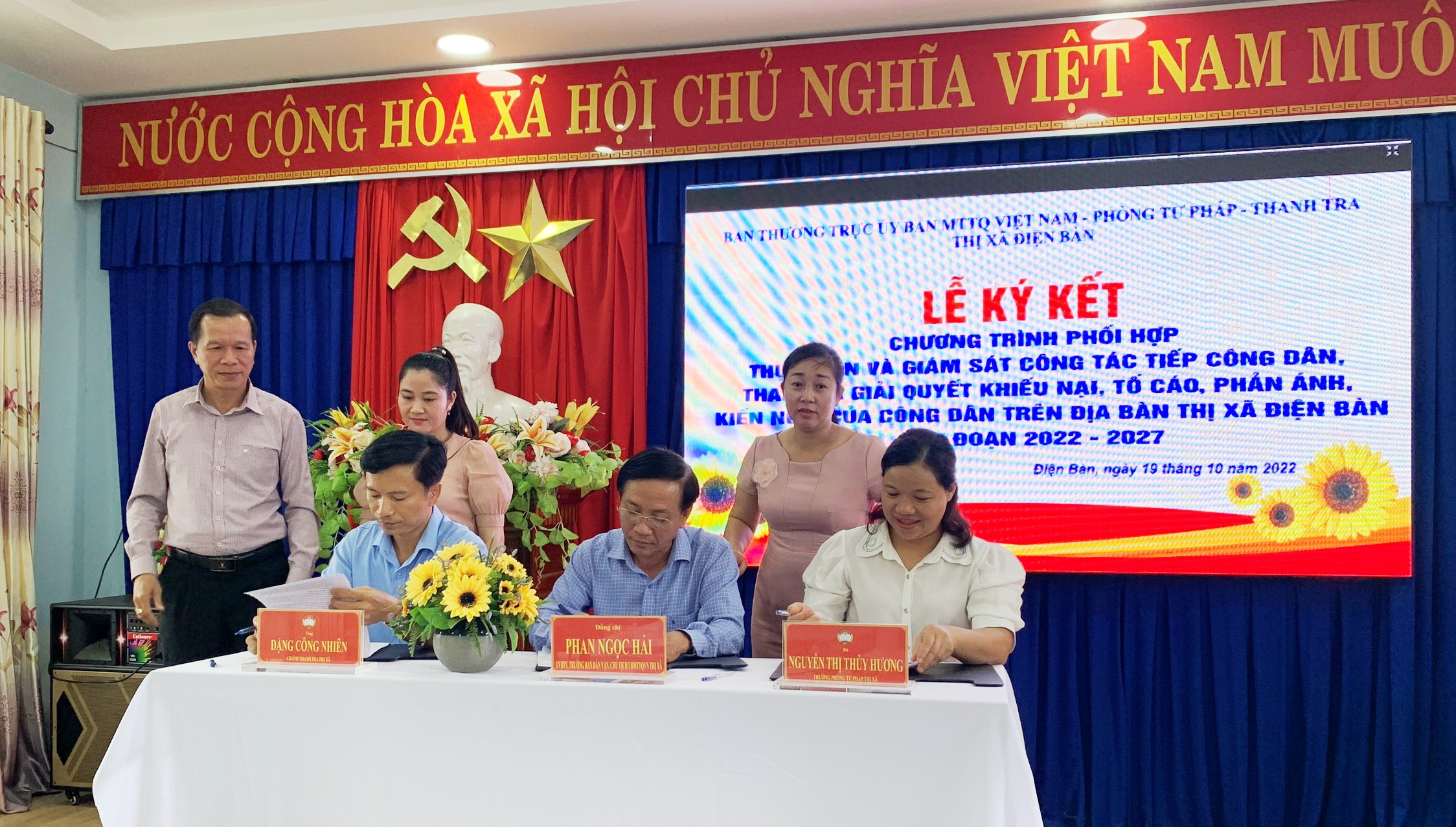 Sau khi nghe đại diện lãnh đạo Phòng Tư pháp thông qua dự thảo Chương trình phối hợp thực hiện và giám sát công tác tiếp công dân, tham gia giải quyết khiếu nại, tố cáo, phản ánh, kiến nghị của công dân trên địa bàn thị xã Điện Bàn giai đoạn 2022 - 2027, các đồng chí tham dự hội nghị đã thảo luận, góp ý, đi đến thống nhất các nội dung của Chương trình. Cuối Hội nghị, đại diện lãnh đạo của các cơ quan đã cùng nhau ký kết Chương trình phối hợp giai đoạn 2022-2027./.