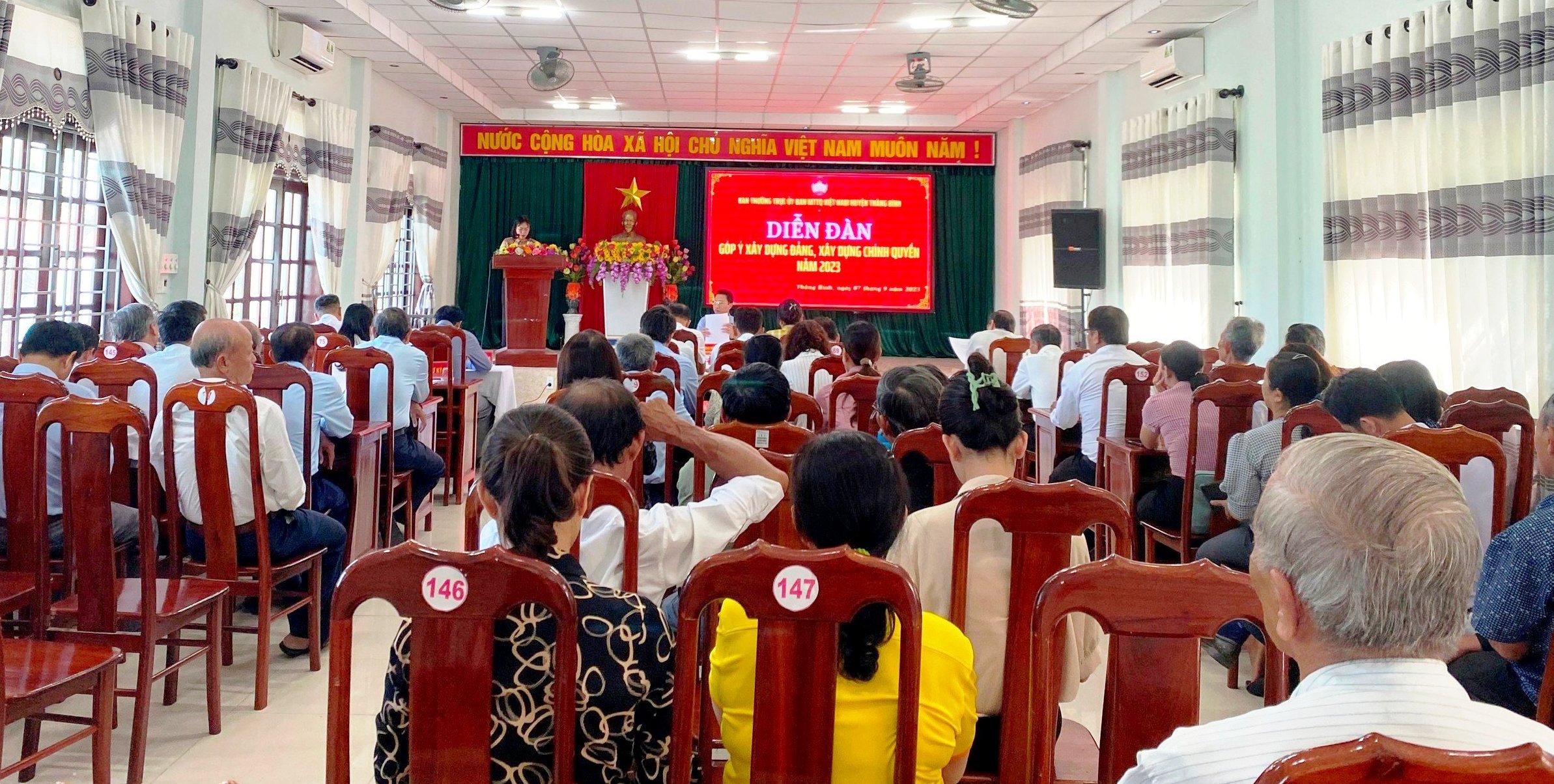 Tại diễn đàn, Ban Thường trực Ủy ban MTTQ Việt Nam huyện đã thông tin đến các đại biểu báo cáo trả lời, tiếp thu, giải trình của Huyện ủy, HĐND và UBND huyện tại diễn đàn năm 2022. Với tinh thần làm việc thẳng thắn, cầu thị, dân chủ, các đại biểu đã tham gia 09 lượt phát biểu với 22 nội dung. Trong đó 07 nội dung góp ý xây dựng Đảng; tham gia góp ý 15 nội dung về xây dựng chính quyền chủ yếu về lĩnh vực đất đai, đầu tư, xây dựng các dự án, bồi thường giải phóng mặt bằng quy hoạch đô thị và các dự án trọng điểm,công tác cải cách hành chính…
