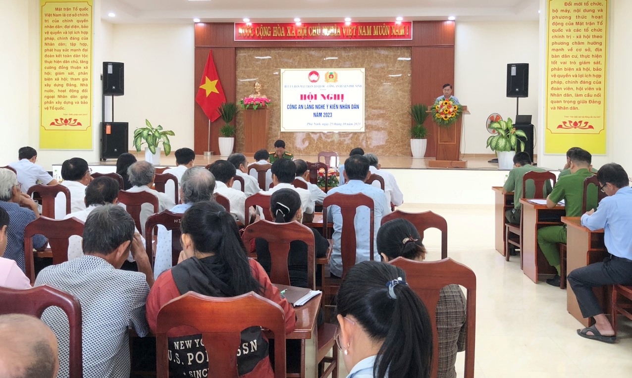 Tại hội nghị, lãnh đạo Công an huyện báo cáo công tác đảm bảo ANTT và xây dựng phong trào toàn dân BVANTQ 10 tháng năm 2023. Trên tinh thần dân chủ, thẳng thắn, Hội nghị nhận được 12 ý kiến về công tác đảm bảo an ninh trật tự, an toàn giao thông, tệ nạn ma túy, cờ bạc, cho vay nặng lãi…