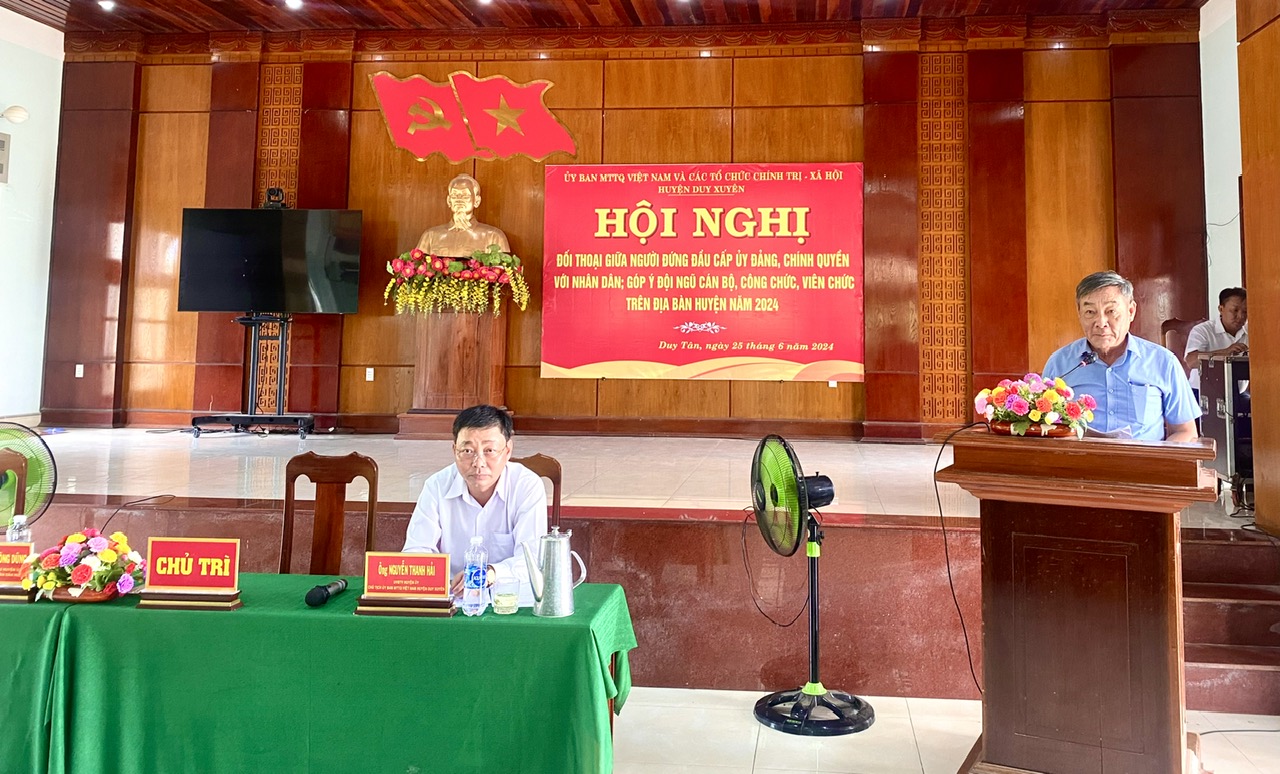 Tại Hội nghị, lãnh đạo huyện Duy Xuyên, các ngành liên quan đã tiếp thu, ghi nhận các ý kiến; đồng thời giải trình và giải thích những vấn đề phản ánh và thắc mắc của bà con Nhân dân. Trong thời gian đến tập trung tháo gỡ những vấn đề còn tồn đọng, vướng mắc mà Nhân dân phản ánh góp phần thúc đẩy phát triển kinh tế - xã hội, giữ vững an ninh - quốc phòng trên địa bàn huyện.