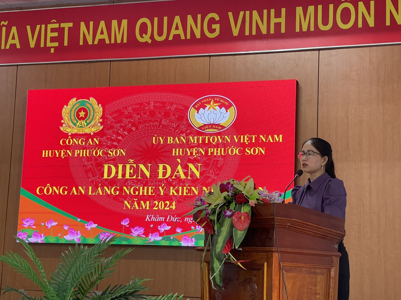 Đồng chí Nguyễn Thị Bích Diễm - HUV, Phó Chủ tịch Ủy ban MTTQ Việt Nam huyện phát biểu tại buổi diễn đàn
