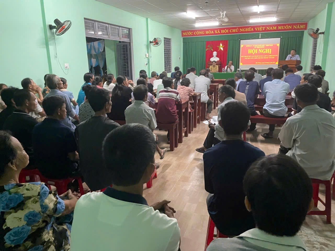 Nắm bắt tình hình tư tưởng, nguyện vọng từ Nhân dân, đầu tháng 9/2024, Ban Thường trực Ủy ban MTTQ Việt Nam xã đã chủ trì tổ chức buổi đối thoại giữa người đứng đầu cấp ủy, chính quyền với Nhân dân thôn. Tại các hội nghị, Nhân dân đã tham gia nhiều ý kiến góp ý với địa phương trên các lĩnh vực liên quan đến đời sống xã hội, giải phóng mặt bằng, môi trường...ảnh hưởng đến đời sống dân sinh như: vấn đề cung cấp điện đến các cụm, tổ dân cư để đảm bảo tính mỹ quan, an toàn; công tác đền bù đất ruộng để xây dựng khu tái định cư thuộc dự án Liên kết vùng Miền trung còn chưa thoả đáng; đơn vị thi công đập Suối Thỏ chưa quan tâm công tác đảm bảo vệ sinh môi trường, lưu lượng xe chạy nhiều gây bụi ảnh hưởng đời sống Nhân dân; việc thu gom rác thải chưa đảm bảo về thời điểm quy định làm rác thải bị ách tắc, vung vãi gây ô nhiễm môi trường...Những kiến nghị, đề nghị của người dân đã được chủ tịch Uỷ ban nhân dân xã giải trình, trả lời thỏa đáng. Tại hội nghị này, lãnh đạo UBND xã cũng đề nghị người dân chăm lo phát triển kinh tế, chung tay với chính quyền trong việc đảm bảo an ninh trật tự, giữ gìn vệ sinh môi trường, xây dựng cảnh quan xanh, sạch, đẹp hướng tới xây dựng xã đạt chuẩn Nông thôn mới kiểu mẫu vào năm 2025.