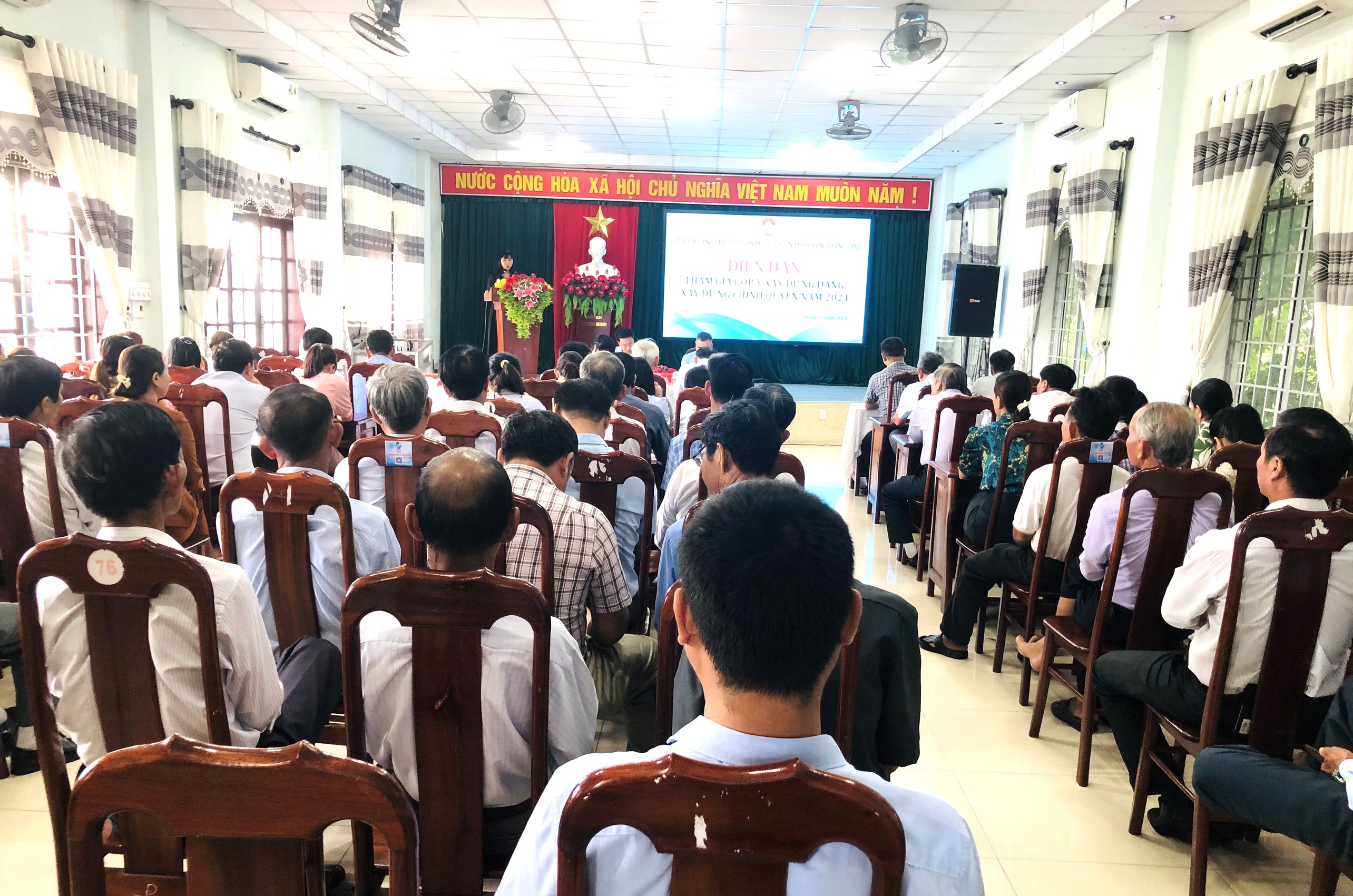 Tham dự diễn đàn có ông Lê Quang Hạt - Phó Bí thư Thường trực Huyện ủy; ông Hồ Văn Minh - UVBTV , Phó Chủ tịch HĐND huyện; ông Trương Công Sơn - HUV, Phó Chủ tịch UBND huyện; đại diện lãnh đạo các ban, ngành, hội, tổ chức chính trị - xã hội huyện, Ủy viên Ủy ban MTTQ Việt Nam, Ban Tư vấn của Ủy ban MTTQ Việt Nam huyện; đại diện các vị là Trưởng Ban Công tác Mặt trận, Bí thư Chi bộ các khu dân cư trên địa bàn huyện. Ông Nguyễn Thanh Phong - UVBTV, Chủ tịch Ủy ban MTTQ Việt Nam huyện và ông Nguyễn Văn Đông - HUV, Phó Chủ tịch Ủy ban MTTQ Việt Nam huyện chủ trì diễn đàn.