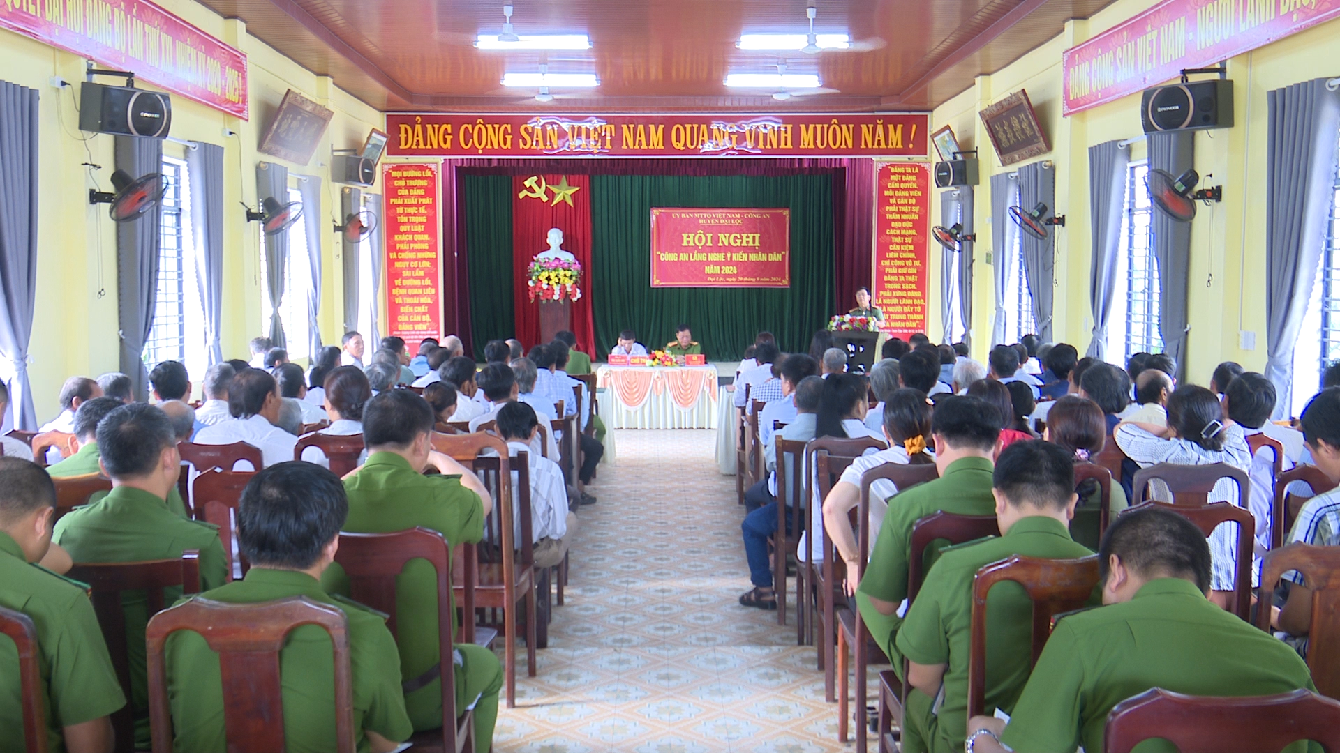 Hội nghị đã được nghe lãnh đạo Công an huyện báo cáo tình hình và kết quả công tác bảo vệ an ninh chính trị, bảo đảm trật tự, an toàn xã hội và xây dựng lực lượng công an huyện trong thời gian qua. Theo đó, từ đầu năm đến nay, Công an huyện Đại Lộc đã chủ động tham mưu và triển khai thực hiện các nhiệm vụ đảm bảo ANTT, ANXH, nhờ đó an ninh trên các lĩnh vực, địa bàn tiếp tục được giữ vững ổn định, không xảy ra đột xuất, bất ngờ và hình thành điểm nóng, bảo đảm an toàn các sự kiện chính trị, kinh tế, xã hội diễn ra; tội phạm và tệ nạn về ma túy tập tiếp tục được kiềm chế; công tác đấu tranh phòng, chống tội phạm về kinh tế, môi trường đạt được nhiều kết quả tích cực; Công tác quản lý nhà nước về ANTT trên địa bàn được nâng cao. Công tác xây dựng phong trào toàn dân bảo vệ ANTQ được triển khai sâu rộng. Công tác xây dựng đảng, xây dựng lực lượng, hậu cần, xây dựng tổ chức đoàn thể được quan tâm lãnh đạo.