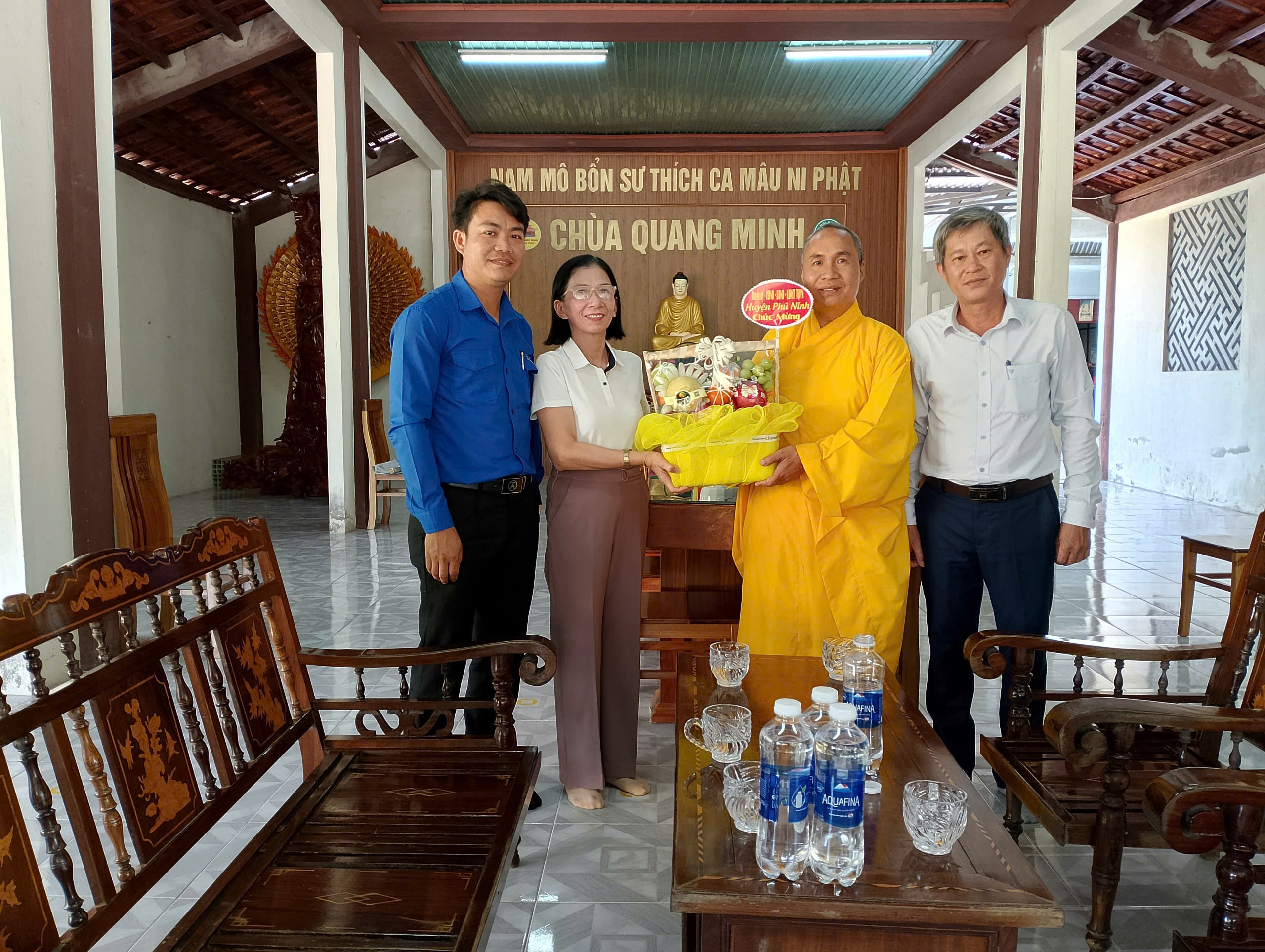 Thay mặt đoàn, ông Huỳnh Xuân Chính và bà Nguyễn Thị Ngọc Vân đã gửi lời chúc mừng đến các vị chức sắc, chức việc và đồng bào Phật tử một mùa Phật đản an lành, hạnh phúc. Đồng thời, lãnh đạo huyện ghi nhận và biểu dương những đóng góp tích cực của cộng đồng Phật giáo trong thời gian qua, đặc biệt là vai trò trong công tác tuyên truyền, vận động Nhân dân thực hiện tốt các chủ trương, chính sách, pháp luật của Đảng và Nhà nước, giữ gìn an ninh trật tự, góp phần vào công cuộc an sinh xã hội và phát triển kinh tế - xã hội của địa phương.