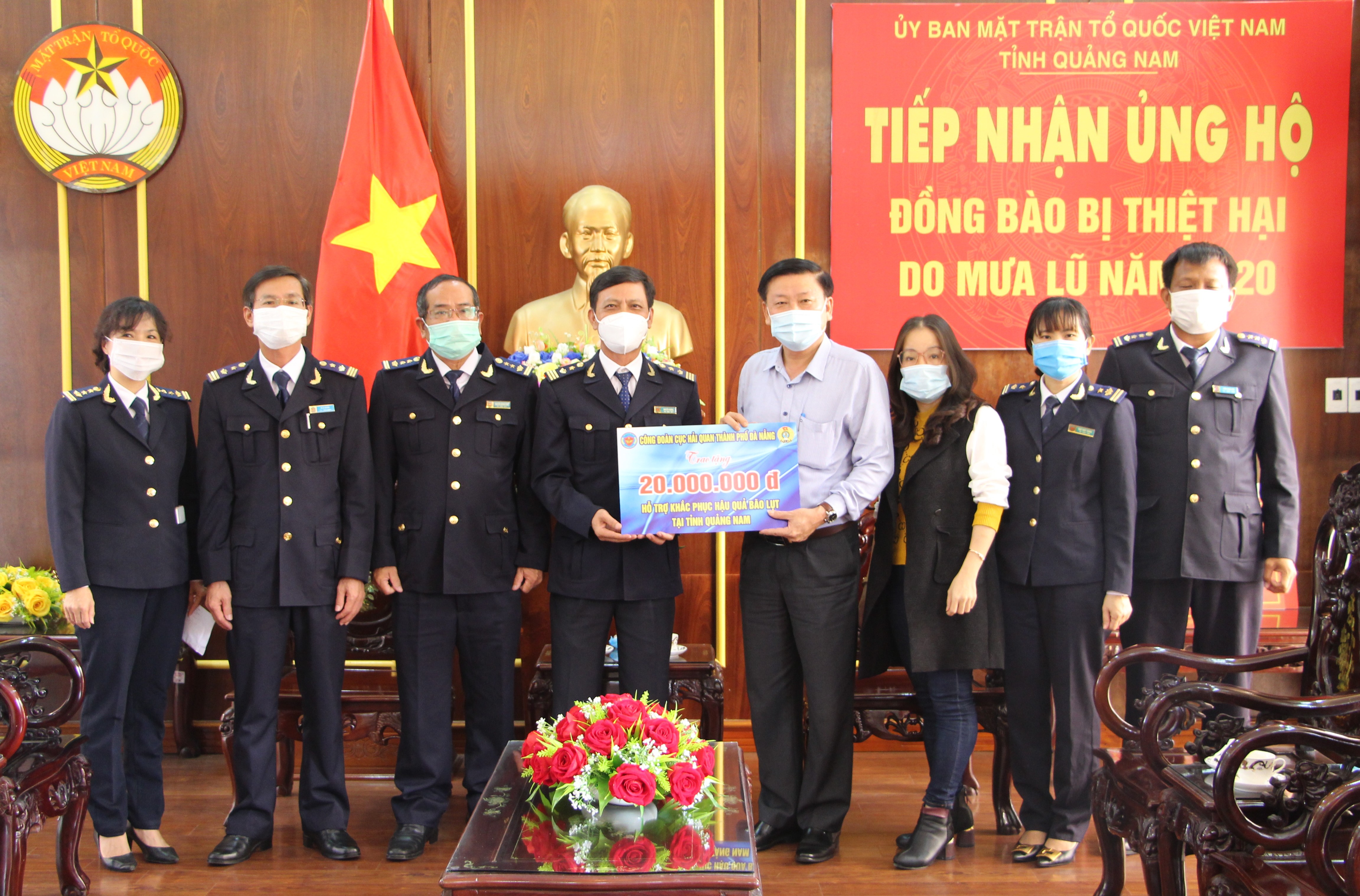 Sáng ngày 03/12/2020, đại diện Công đoàn Cục Hải quan thành phố Đà Nẵng đến thăm và ủng hộ đồng bào Quảng Nam số tiền 20 triệu đồng góp phần khắc phục hậu quả bão lụt. Ông Lê Thái Bình- Phó Chủ tịch Ủy ban MTTQ Việt Nam tỉnh tiếp Đoàn và trân trọng cảm ơn tình cảm của cán bộ, công chức, viên chức Cục Hải quan Đà Nẵng đối với đồng bào Quảng Nam. Số tiền ủng hộ sẽ được chuyển vào Quỹ cứu trợ để tập trung chăm lo đời sống, hỗ trợ sửa chữa nhà ở cho người dân bị thiệt hại.