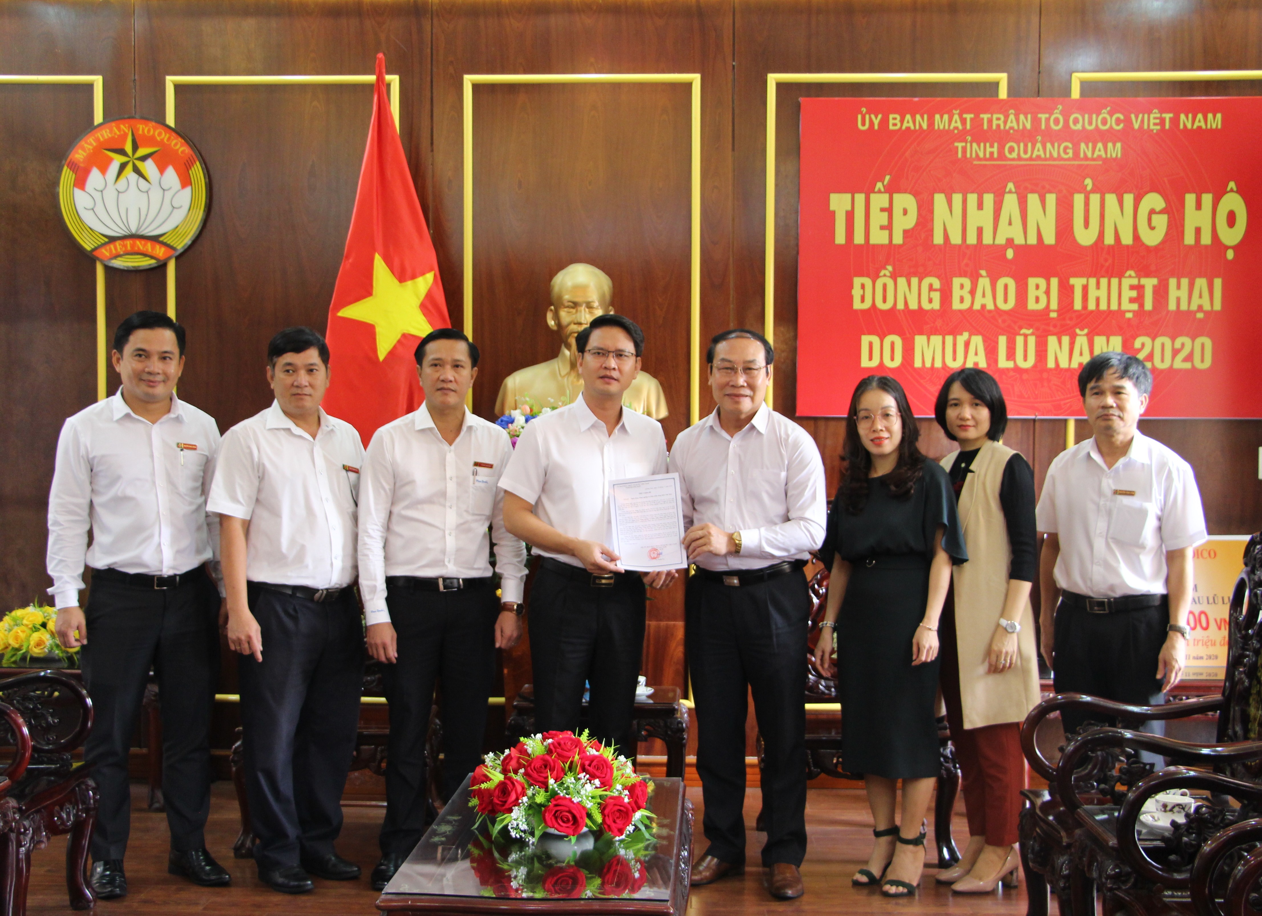 Ngày 4/11/2020, Ban Thường trực Ủy ban MTTQ Việt Nam tỉnh tiếp đón Đoàn cán bộ nhân viên ngành Ngân hàng Nhà nước thành phố Đà Nẵng đến trao số tiền ủng hộ 250 triệu đồng, trong đó có 50 triệu đồng của cụm thi đua số 01 ngành Ngân hàng Nhà nước gửi ủng hộ đồng bào Quảng Nam và Lãnh đạo Tổng Công ty 319 Bộ Quốc phòng đến thăm hỏi, động viên và ủng hộ 300 triệu đồng.